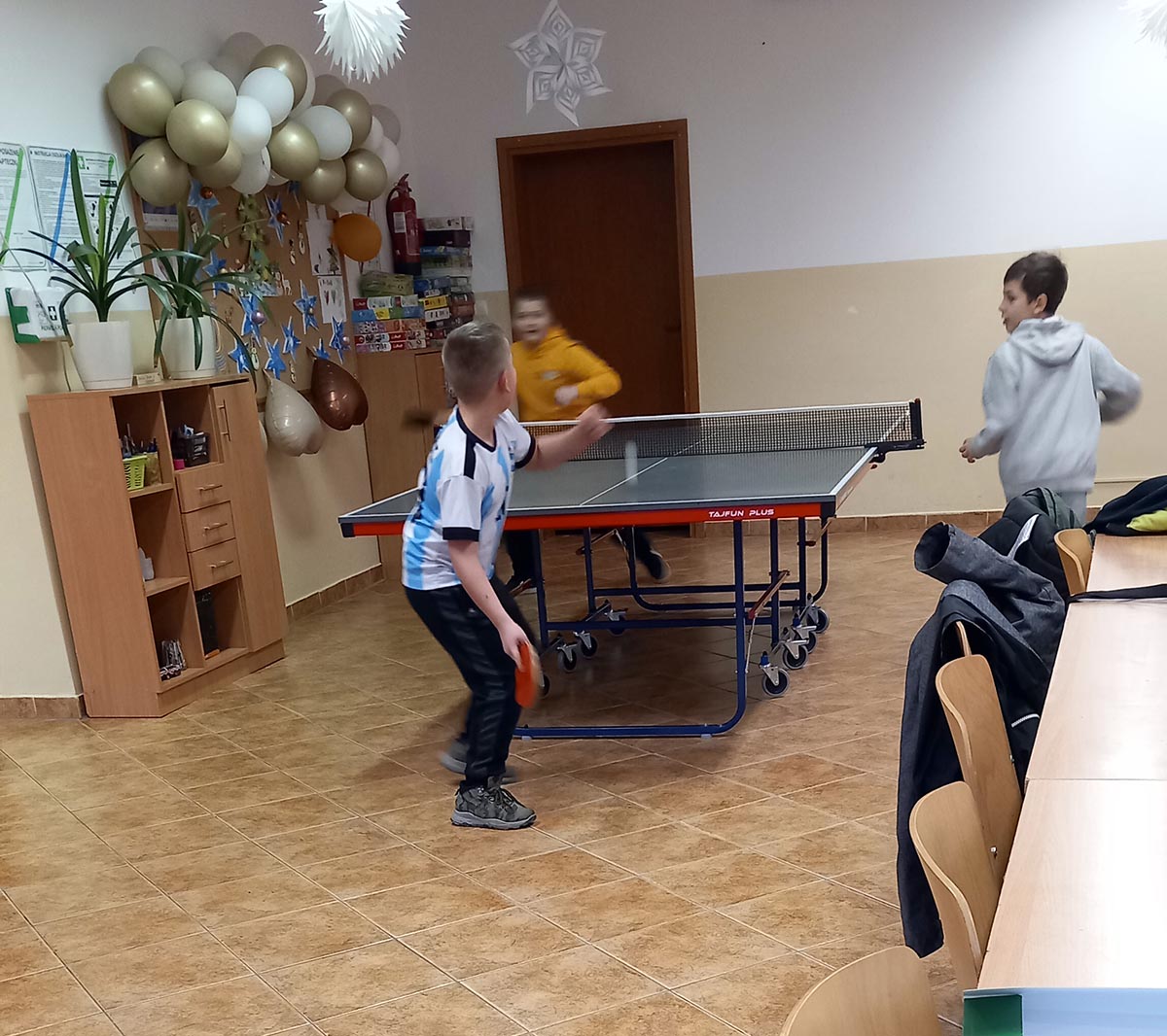 Zajęcia plastyczne pobudziły wyobraźnię uczestników, którzy z zaangażowaniem tworzyli zimowe prace, wykorzystując różne techniki i materiały. Nie zabrakło aktywności fizycznej – podczas zajęć sportowych dzieci miały okazję wziąć udział w rozgrywkach drużynowych, ćwiczeniach sprawnościowych i zabawach ruchowych.