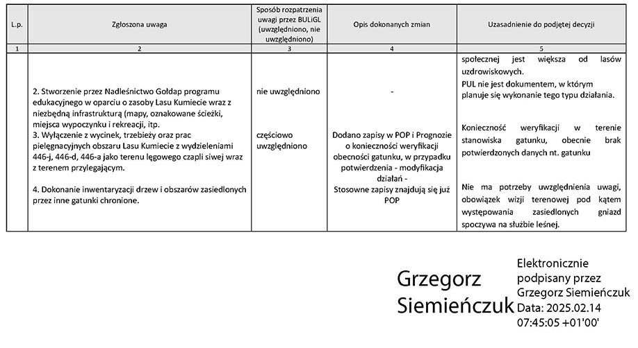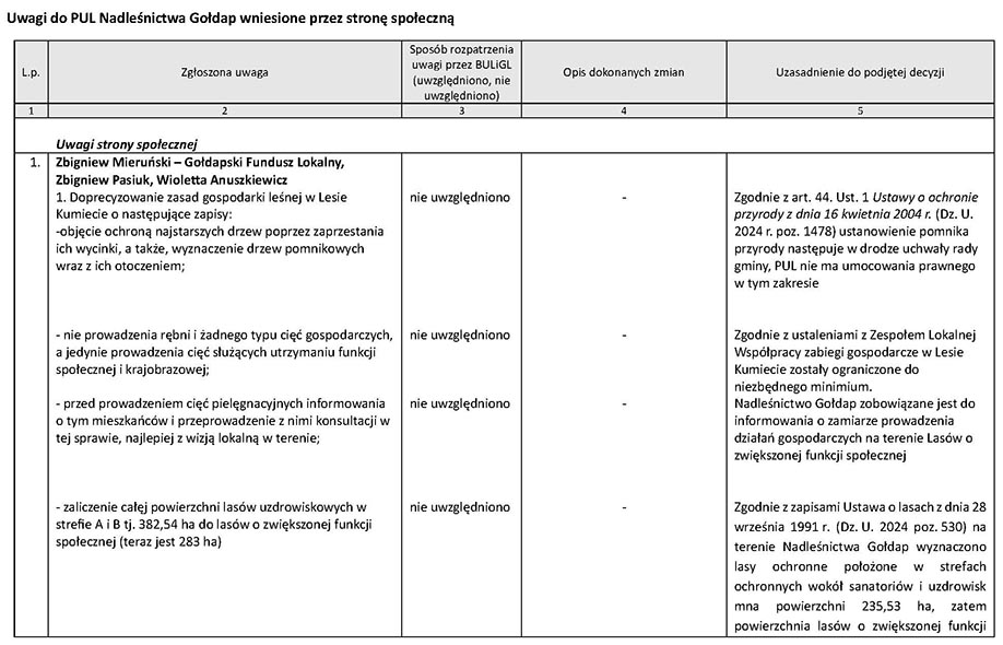 Niżej zamieściliśmy odpowiedź Lasów Państwowych na propozycje osób uczestniczących w konsultacjach społecznych, dotyczących Lasu Kumiecie i gospodarowania drzewostanem. LP nie uwzględniły większości sugestii.
