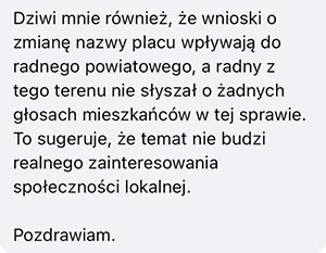 Cóż, komentarz raczej niepotrzebny, bo trudno znaleźć wystarczająco ostre słowa by ocenić poziom tej wypowiedzi i poziom jej autora. Smuci też to, że tak zachowuje się radny powiatowy.