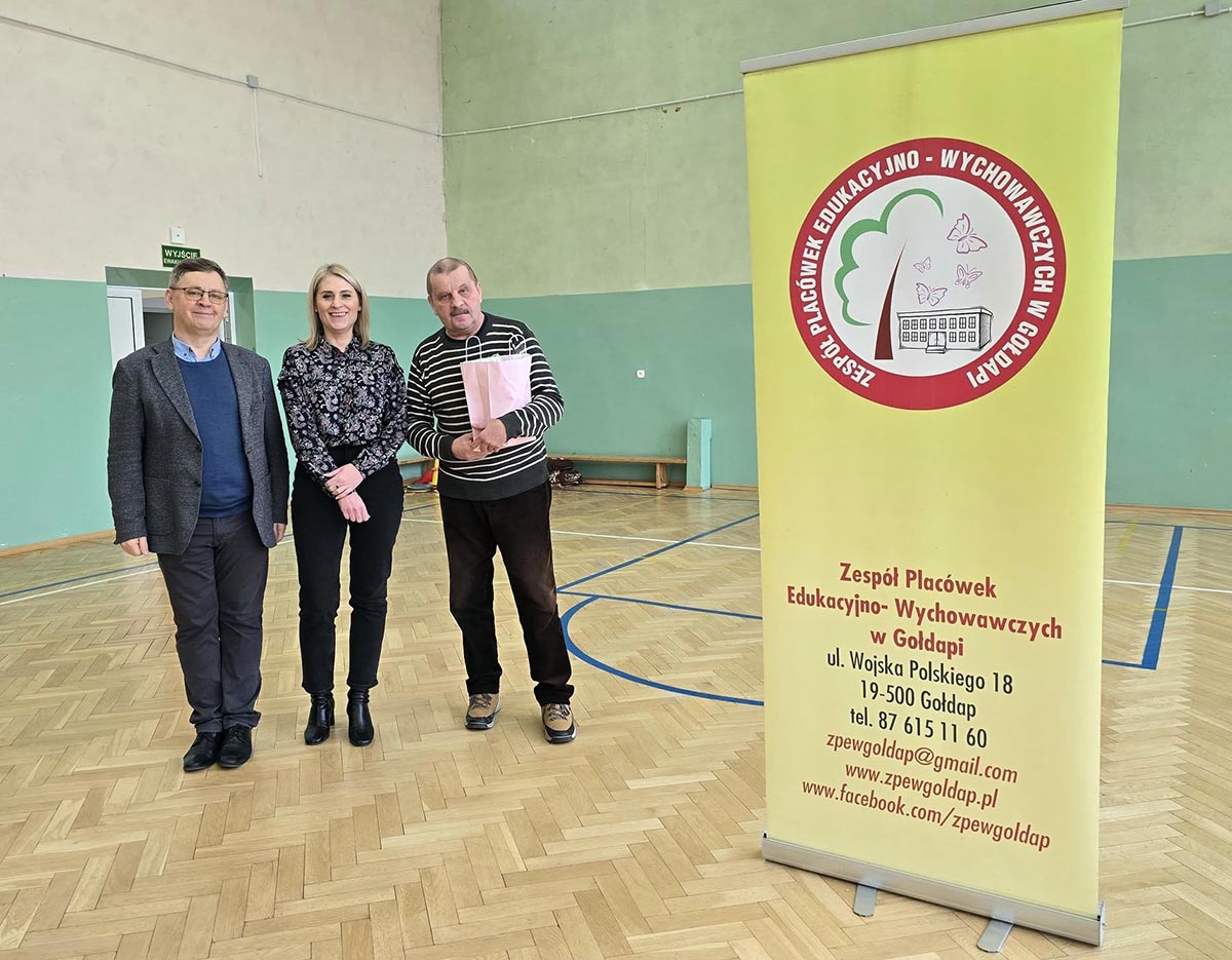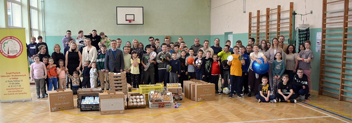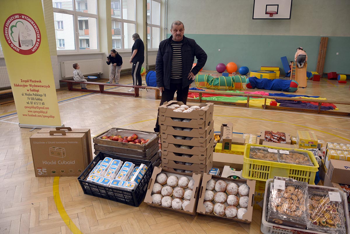Pan Andrzej Sokołowski przekazał na rzecz ZPEW drobny sprzęt sportowy, klocki dydaktyczne oraz artykuły spożywcze, m.in.: wyroby cukiernicze w tym przepyszne pączki, słodycze, owoce oraz napoje pozyskane od lokalnych sponsorów jak również spoza Gołdapi. Społeczność ZPEW składa gorące podziękowania i wyrazy wdzięczności.