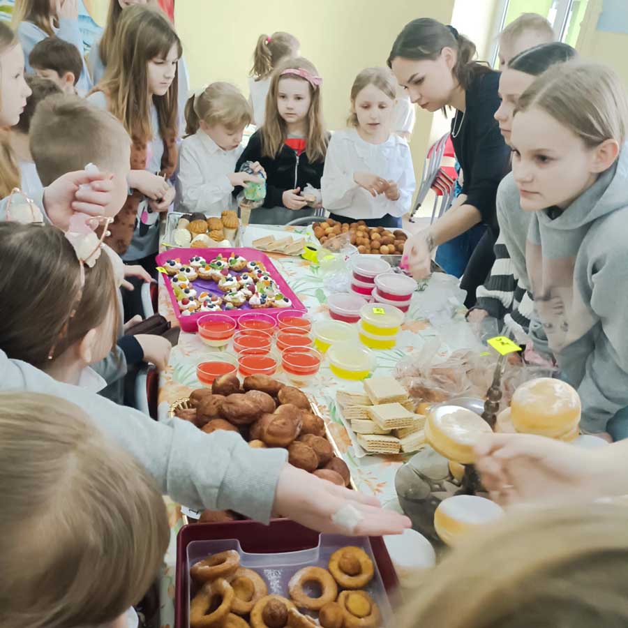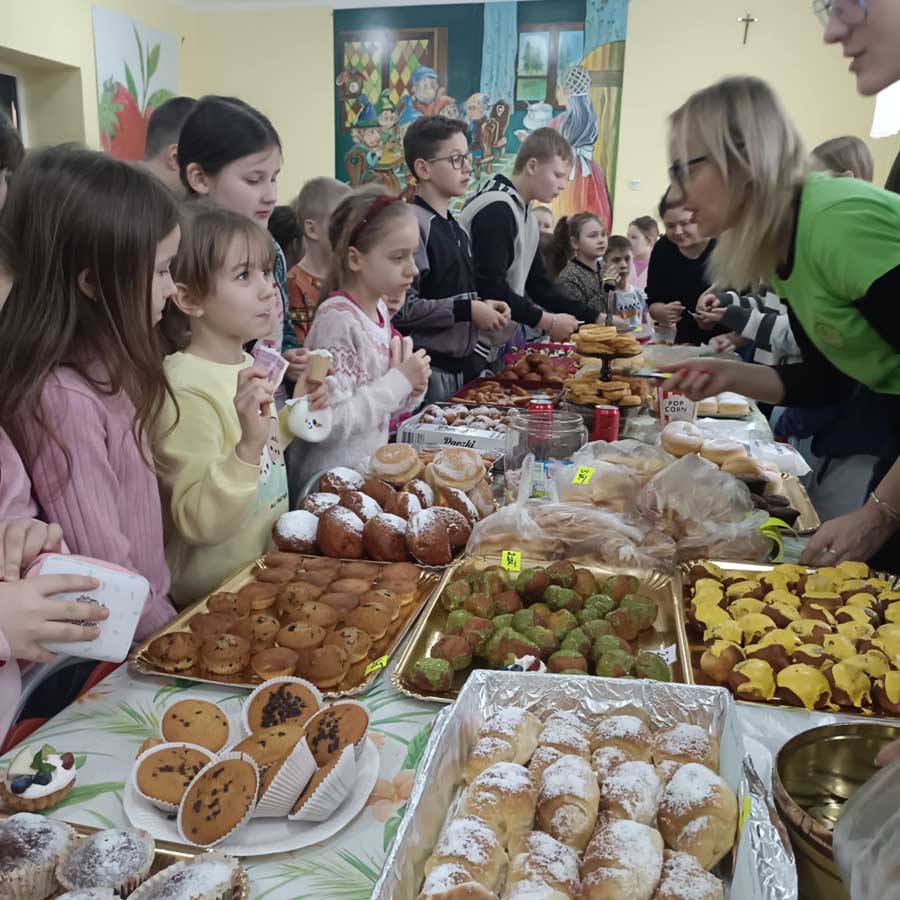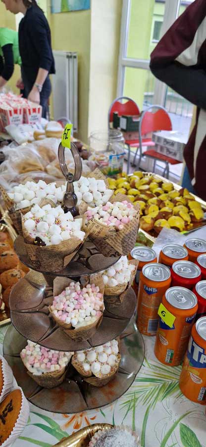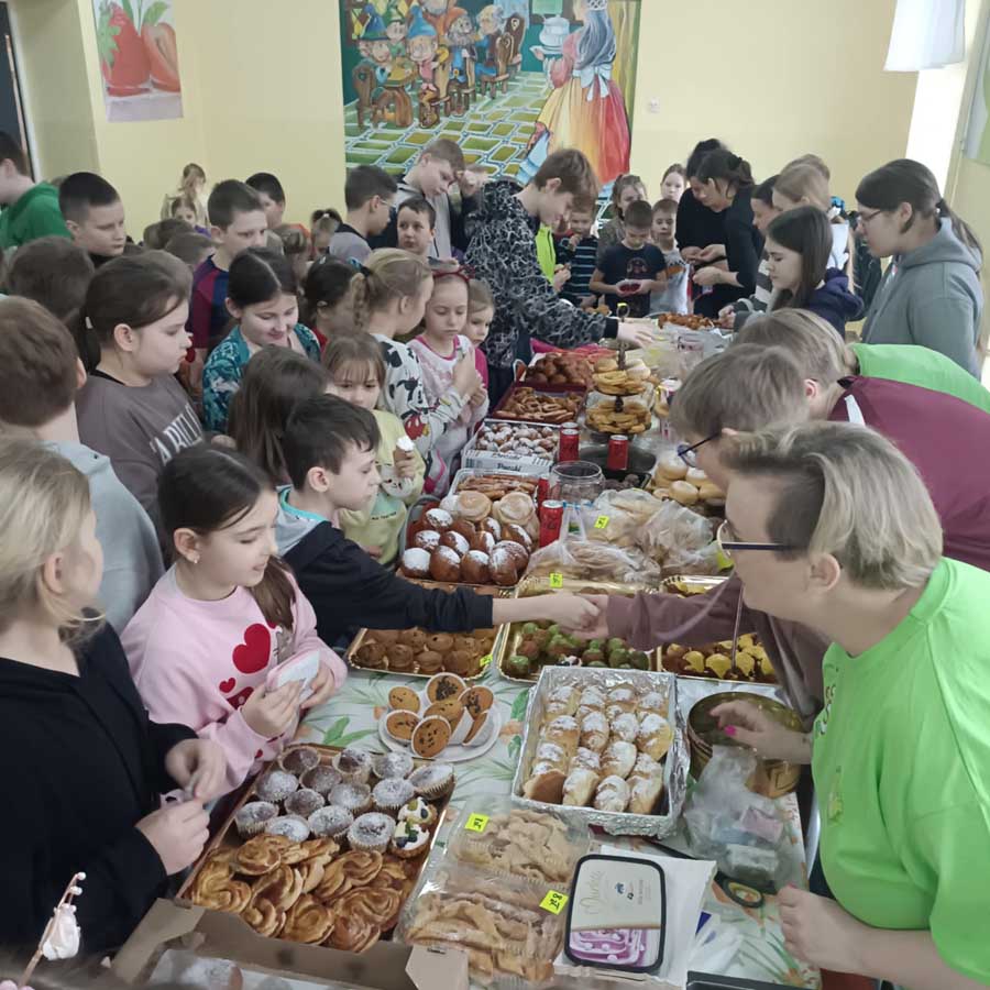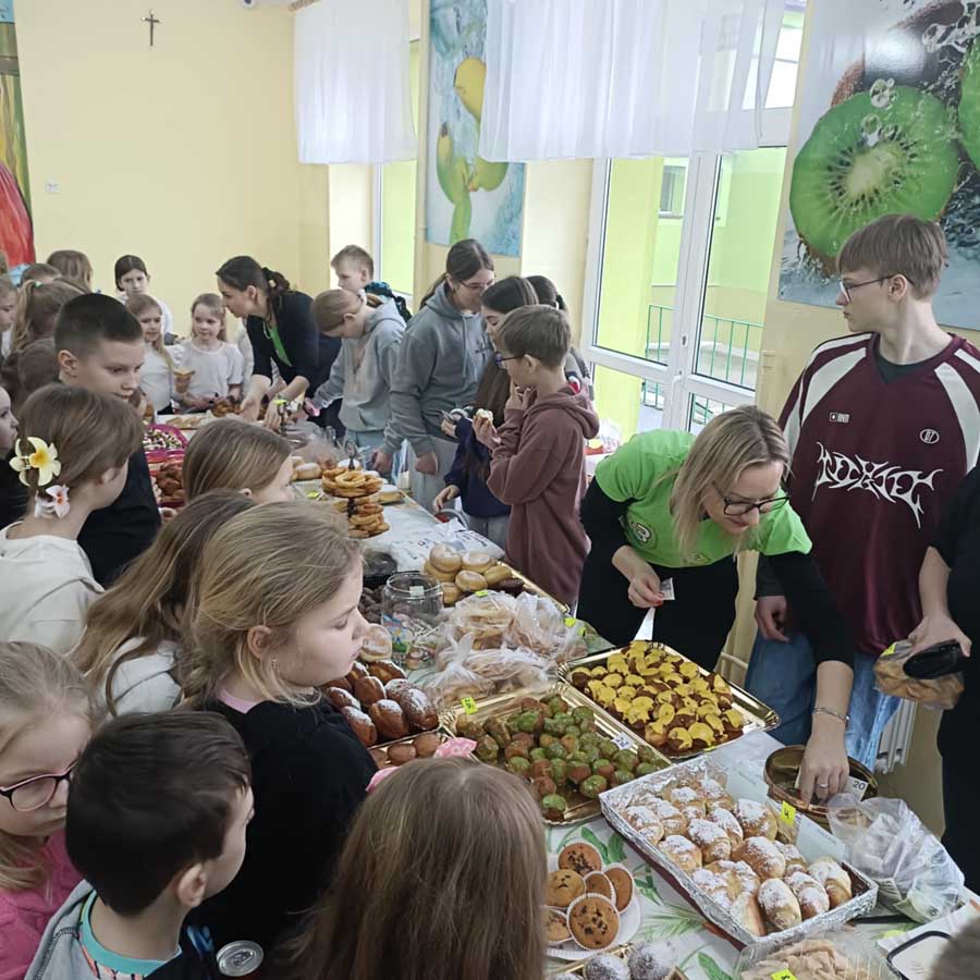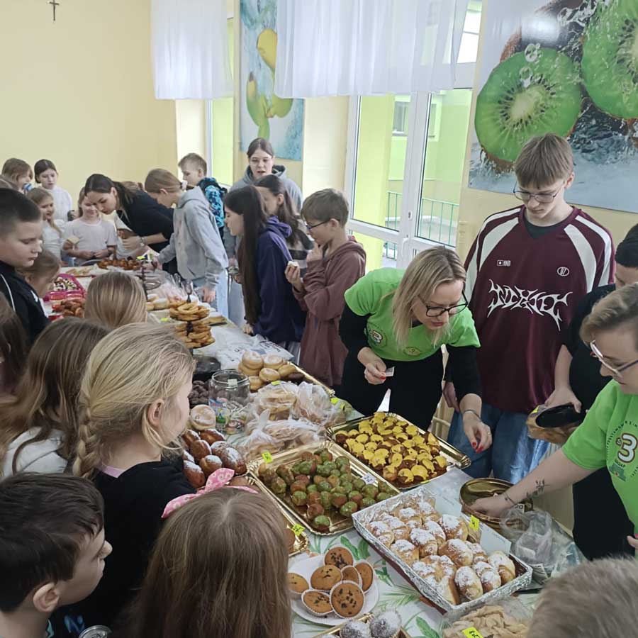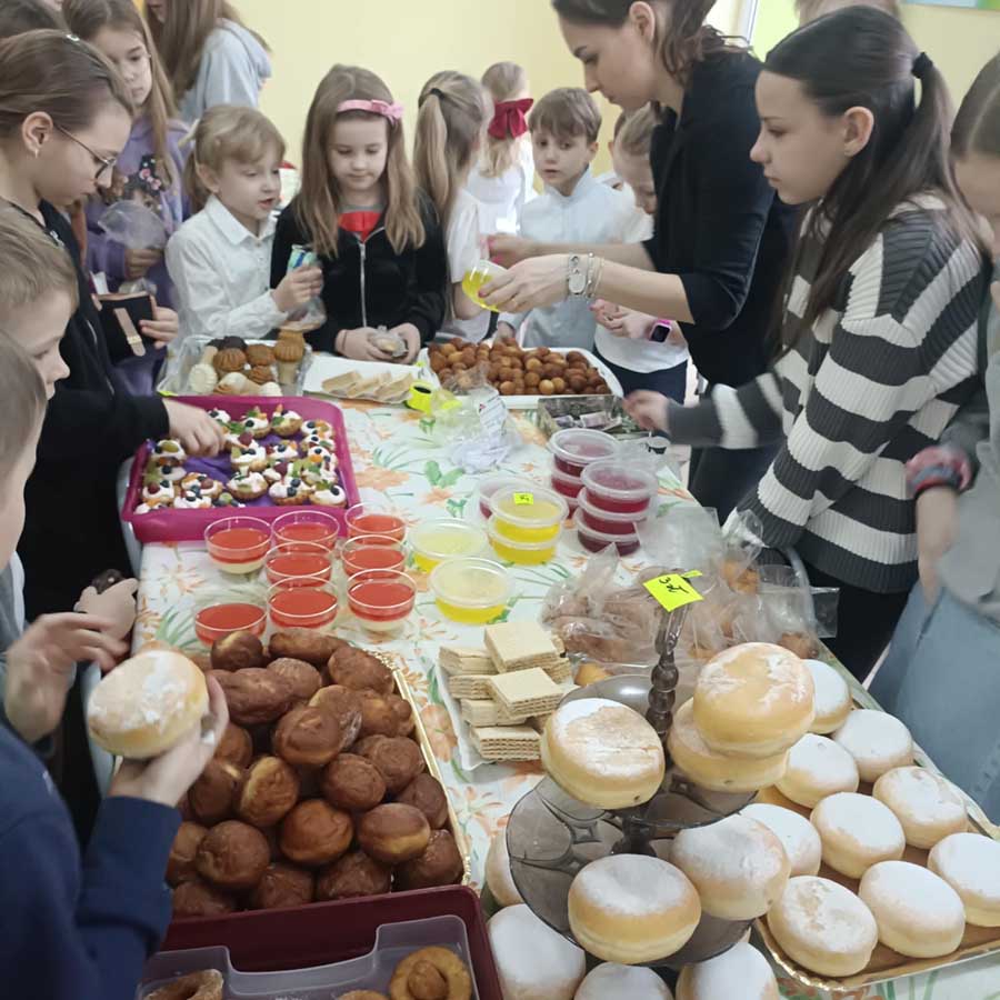 Organizatorem wydarzenia byli uczniowie i rodzice. Dochód ze sprzedaży słodkości zostanie przeznaczony na karmę dla kotów, które nie mają własnego domu. Każdy, kto zakupił pączka lub inne wypieki na kiermaszu, dołożył swoją cegiełkę do poprawy losu czworonożnych podopiecznych „Bezdomniaków”.