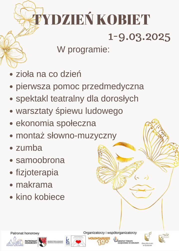 W ramach Tygodnia Kobiet Dom Kultury w Gołdapi zaprasza na wydarzenia, które w dniach 5-9 marca z pewnością umilą czas i dostarczą wielu wrażeń. W programie znajdą się: seans filmowy, spektakl teatralny oraz montaż słowno-muzyczny.