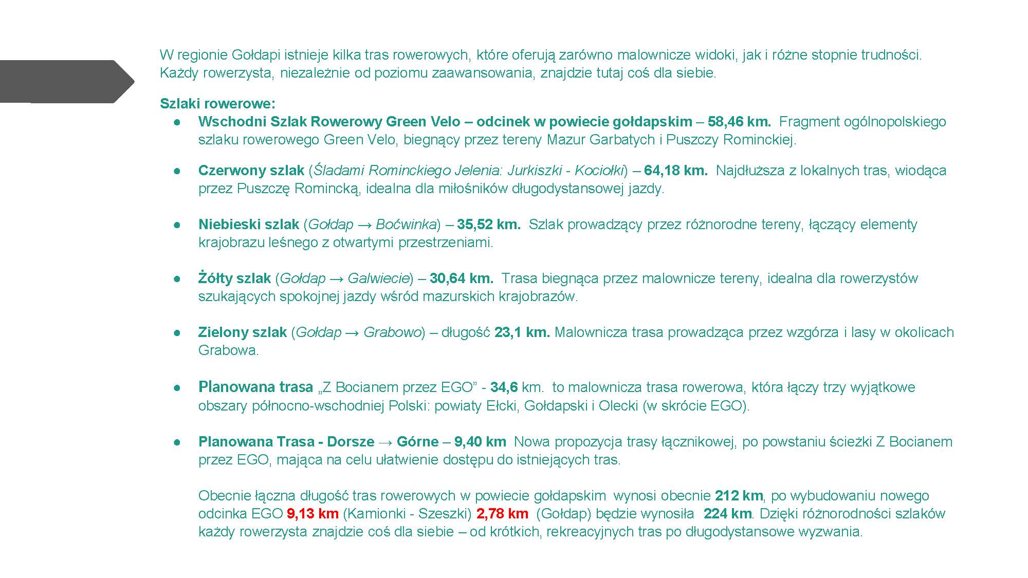 I na koniec rzecz, której nie można ominąć. Od lat mamy ogromne zapotrzebowanie na szkolenia urzędników w zakresie pisania tekstów informacyjnych (w tym programów sesji). Projekt jest na to kolejnym dowodem. W projekcie dotyczącym „gołdapskiej” części szlaku razi m.in. to, że „powiat gołdapski” ustawicznie pisany jest z wielkich liter. „Gmina Gołdap” w tym kontekście i wewnątrz zdania (pomijając pisma oficjalne) powinna być napisana jako „gmina Gołdap”.