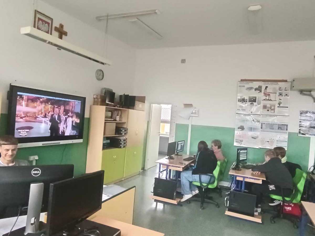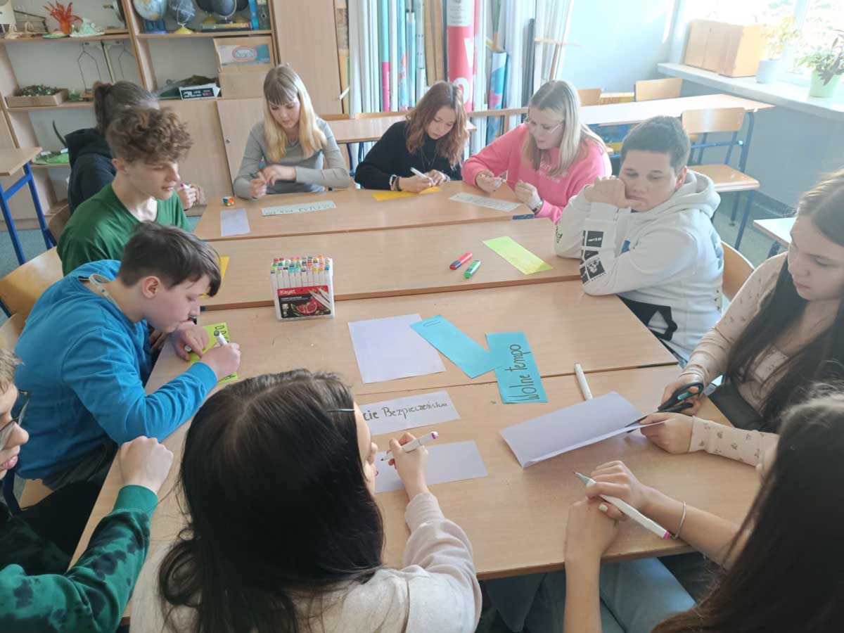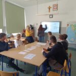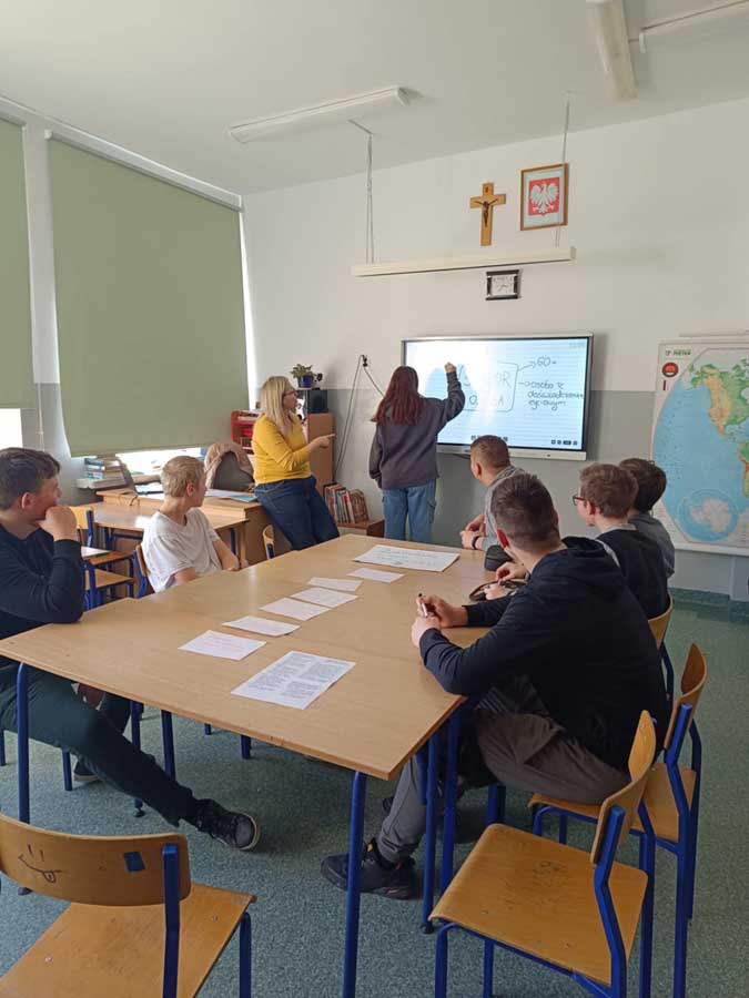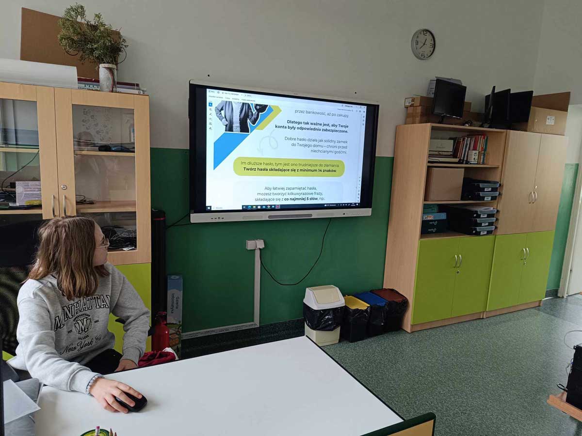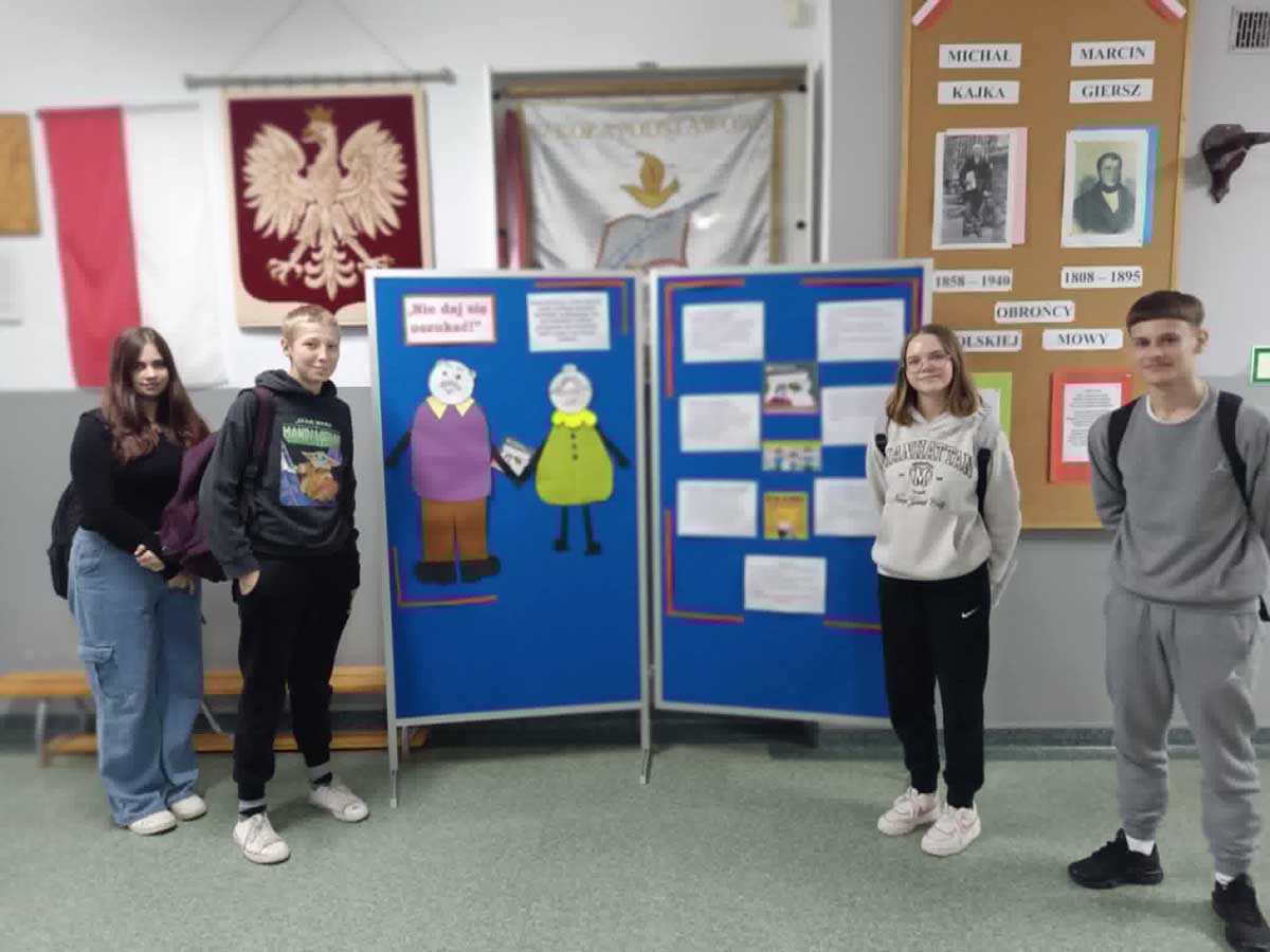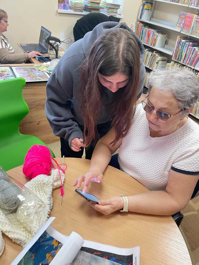 Moduł III dotyczył kwestii bezpieczeństwa w sieci, w tym rozpoznawania oszustw internetowych, takich jak phishing, oszustwa „na wnuczka” czy wyłudzenia randkowe. Uczniowie odegrali scenkę przedstawiającą sytuację oszustwa, co pomogło seniorom lepiej zrozumieć, jak unikać niebezpieczeństw w Internecie. Ponadto uczniowie przygotowali ulotki i gazetkę, które zawierały porady, jak bronić się przed oszustami. Seniorzy podzielili się swoimi pasjami, pokazując uczniom tradycyjne rękodzieła, takie jak hafty krzyżowe, co było dla młodszych uczestników ciekawą okazją do odkrycia zapomnianych form spędzania wolnego czasu.