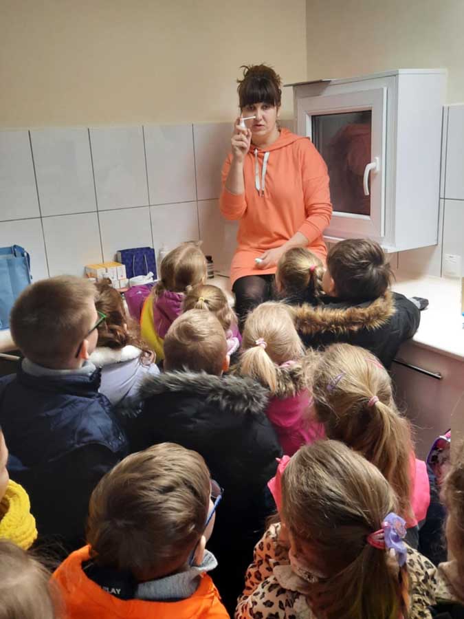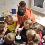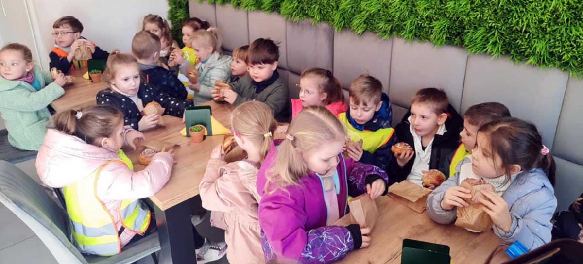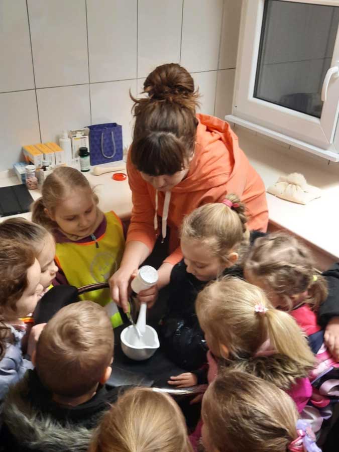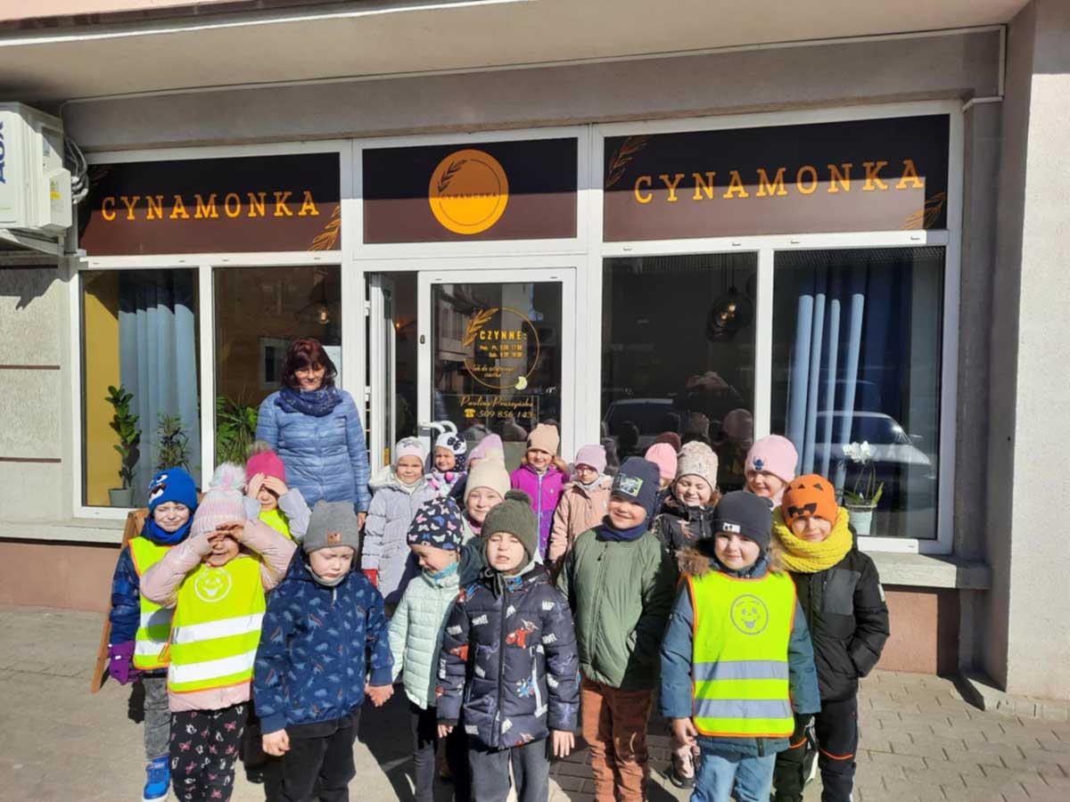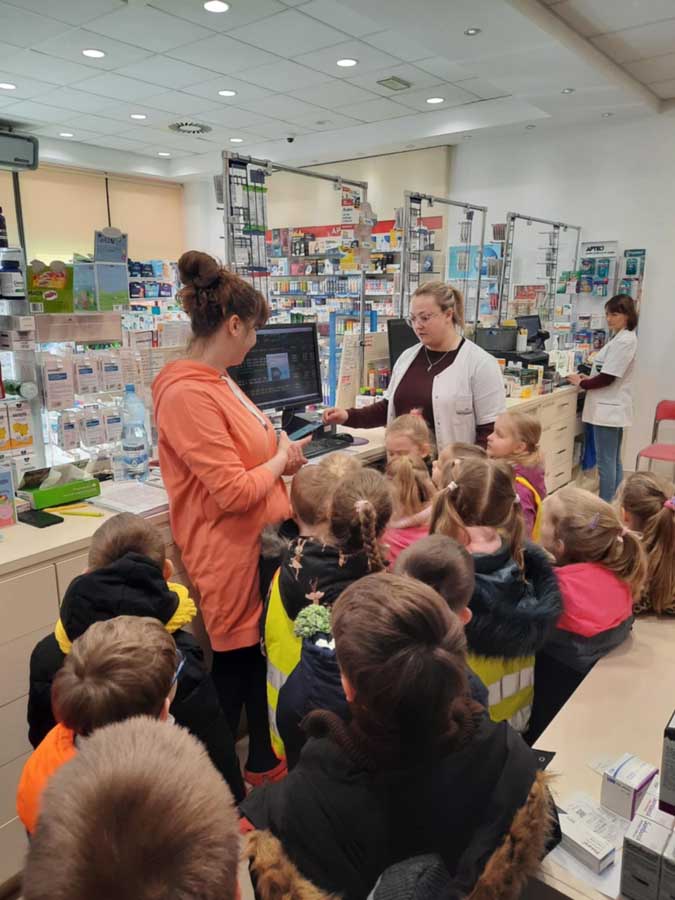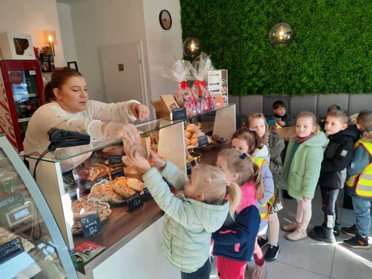 Podczas wycieczki przedszkolaki poznały pracę aptekarza, cukiernika oraz sprzedawcy. Stojąc w kolejce 5-latki poczuły smak bycia klientem, same zakupiły słodkie wypieki i spożyły je w cukierni.