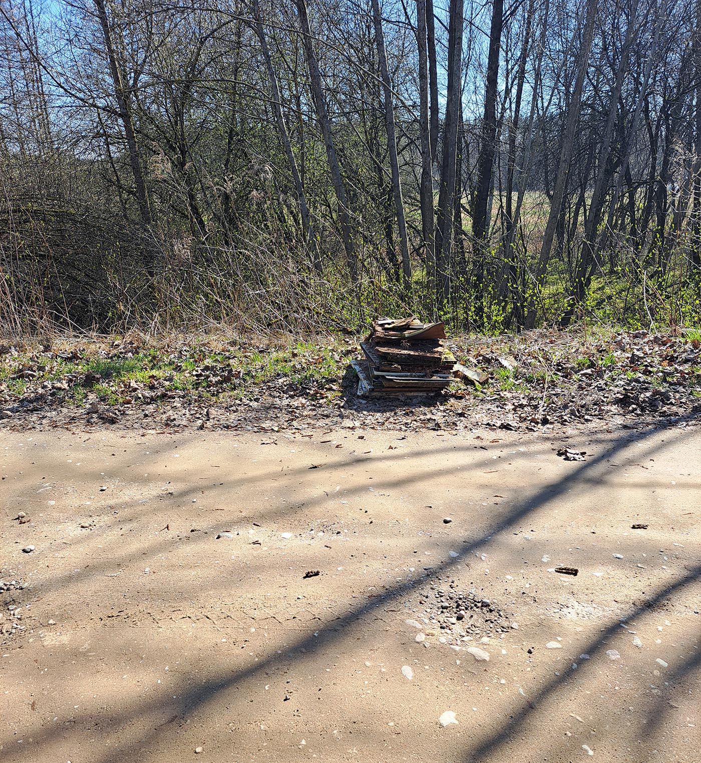 Wśród odpadów puste pojemniki po płynach, części metalowe i kilka opon samochodowych. Miejmy nadzieję, że worki szybko zostaną stamtąd zabrane.