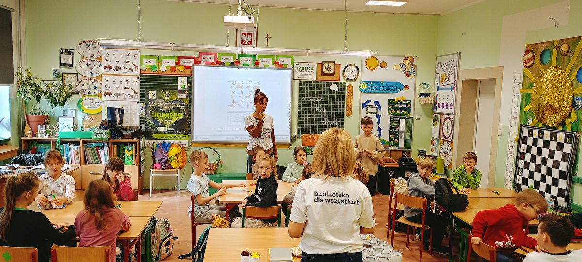 W trakcie obchodów bibliotekarki poprowadziły dwa twórcze warsztaty zatytułowane „Biblioteczny eko-zwierz” oraz „Wspólna eko-galeria”. Podczas pierwszych warsztatów młodszy uczestnicy tworzyli kolorowe kotki, pieski i zajączki z materiałów przeznaczonych do recyklingu – używając puszek, drucików czy innych surowców, co stanowiło doskonałą okazję do ponownego wykorzystania materiałów i promowania ekologicznych postaw.