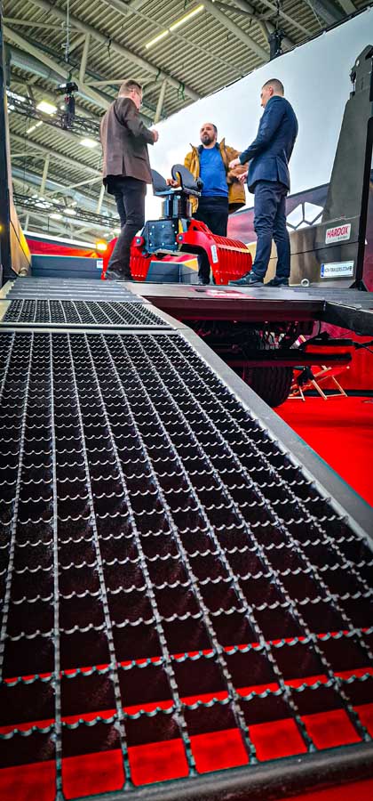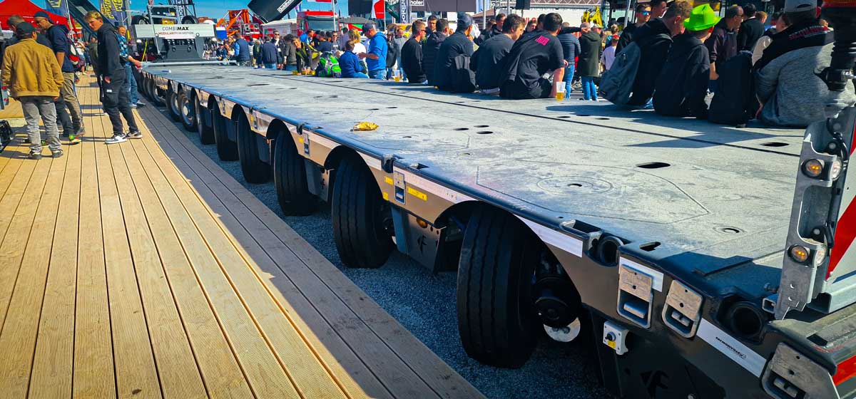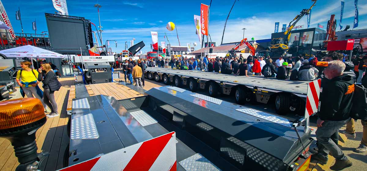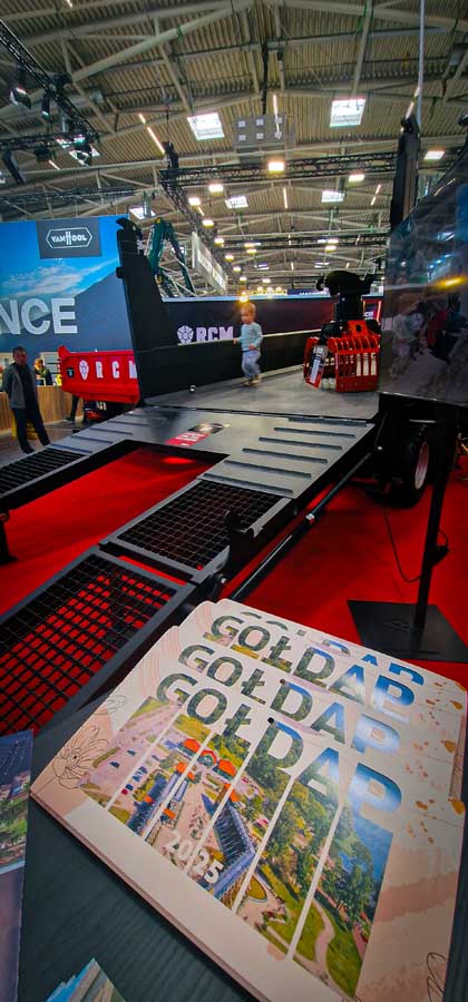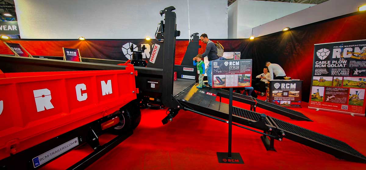 Nasze stoisko cieszyło się ogromnym zainteresowaniem. Zaprezentowaliśmy tam nasze flagowe produkty: przyczepę CT PLUS z opatentowanymi, hydraulicznie rozkładanymi najazdami – unikatowym rozwiązaniem w skali światowej, które łączy niezawodność z komfortem obsługi. Uwagę przyciągała także PK2 – nowa wersja przyczepy koparkowej z trójstronnym wywrotem, skrętnym dyszlem, hydroburtą i sterowaną pilotem.