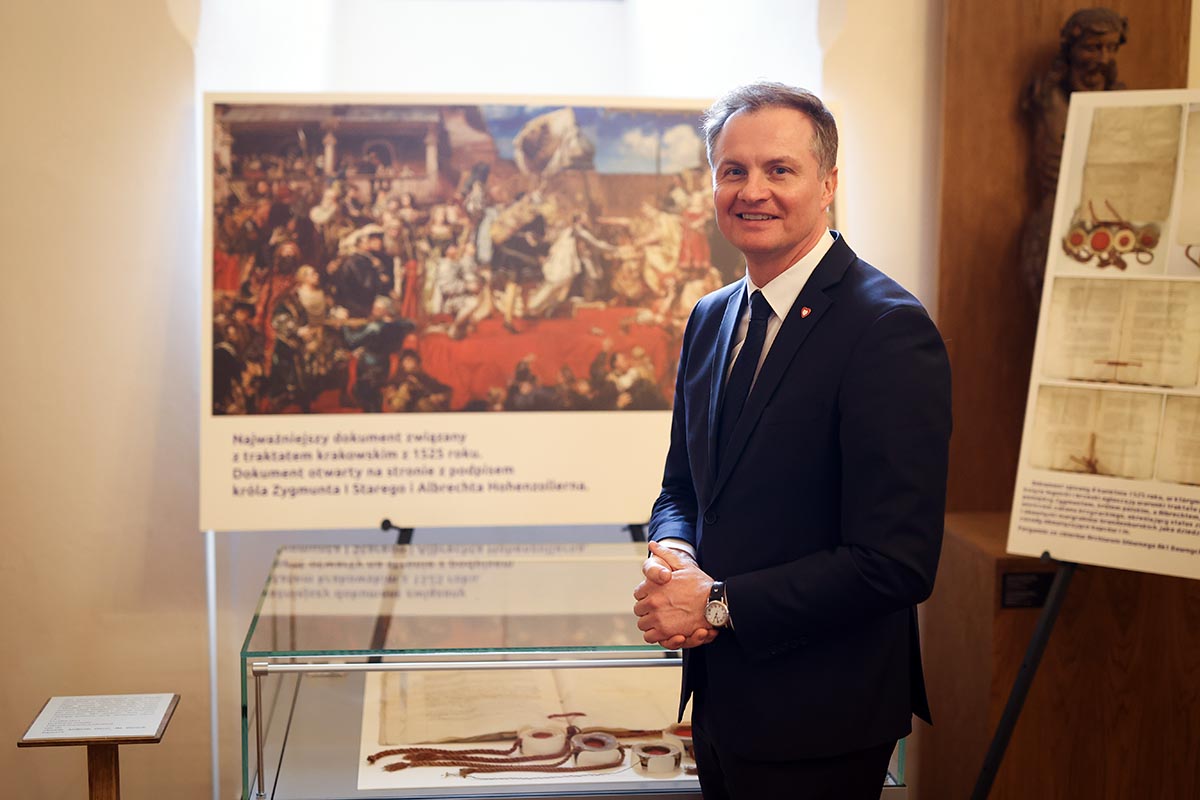 Podczas konferencji, dzięki uprzejmości Archiwum Głównego Akt Dawnych w Warszawie został także zaprezentowany oryginalny pergamin z aktami traktatu pokojowego z 1525 roku. Bezcenny dokument, opatrzony podpisami oraz pieczęciami króla i księcia, jest udostępniany niezwykle rzadko. Będzie go można oglądać w Muzeum Warmii i Mazur w Olsztynie do 16 kwietnia 2025 roku.