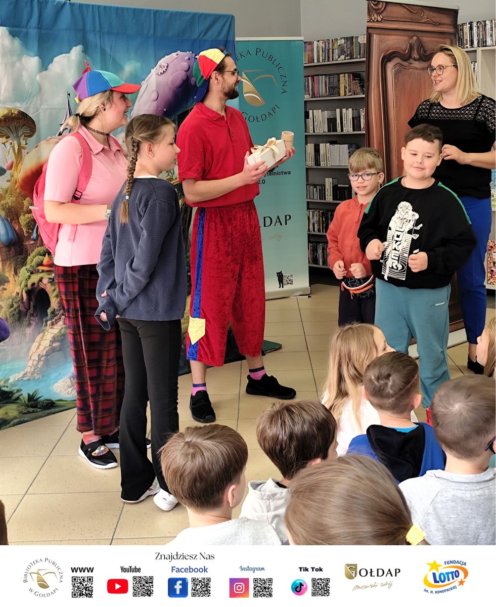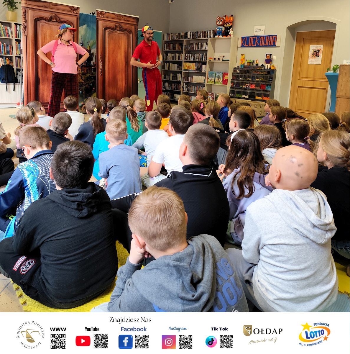 Wańka i Ećko postanowili pomóc nowym znajomym i stawić czoła legendarnemu Smokowi. Nie była to jednak prosta misja – wymagała odwagi, pomysłowości i wsparcia widzów! Dzięki interaktywnej formie spektaklu, dzieci mogły aktywnie uczestniczyć w przygodzie bohaterów, ucząc się przy tym, że nie warto oceniać nikogo po wyglądzie – nawet groźny Smok może mieć dobre serce, współpraca i przyjaźń są kluczem do przezwyciężenia każdego strachu, a każdy z nas ma w sobie dobro – wystarczy tylko dobrze poszukać! Spektakl „Stara szafa, zapałki i smok” został wystawiony w gołdapskiej Bibliotece Publicznej, a za magiczną inscenizację odpowiadali aktorzy z krakowskiego teatru Krak Art Bis. Było to pełne humoru, wzruszeń i mądrych przesłań wydarzenie, które poruszyło nie tylko najmłodszych widzów, ale i dorosłych!