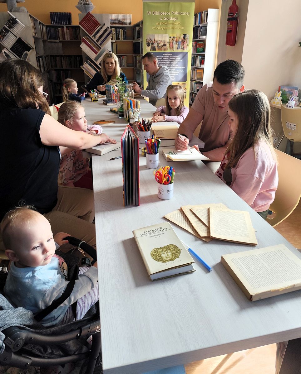To wydarzenie połączyło świąteczne tradycje z literaturą i działaniami twórczymi, tworząc przestrzeń do wspólnej, kreatywnej zabawy. Spotkanie rozpoczęło się od wspólnego odczytania fragmentów publikacji o wielkanocnych zwyczajach, które wprowadziły uczestników w klimat nadchodzących świąt i stały się literackim punktem wyjścia do dalszych działań.