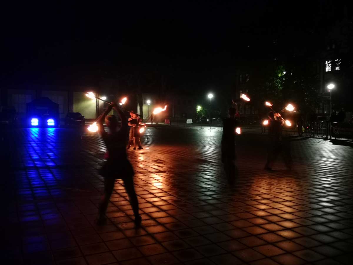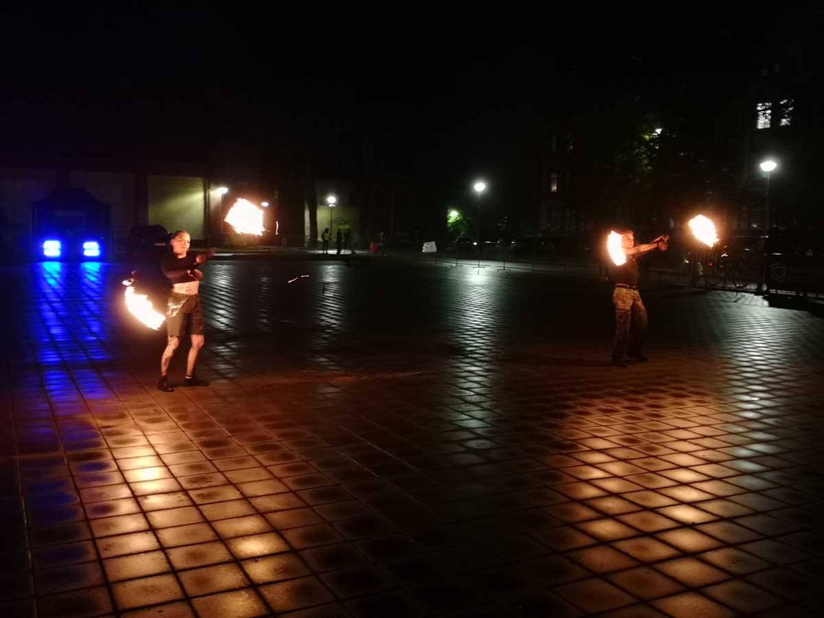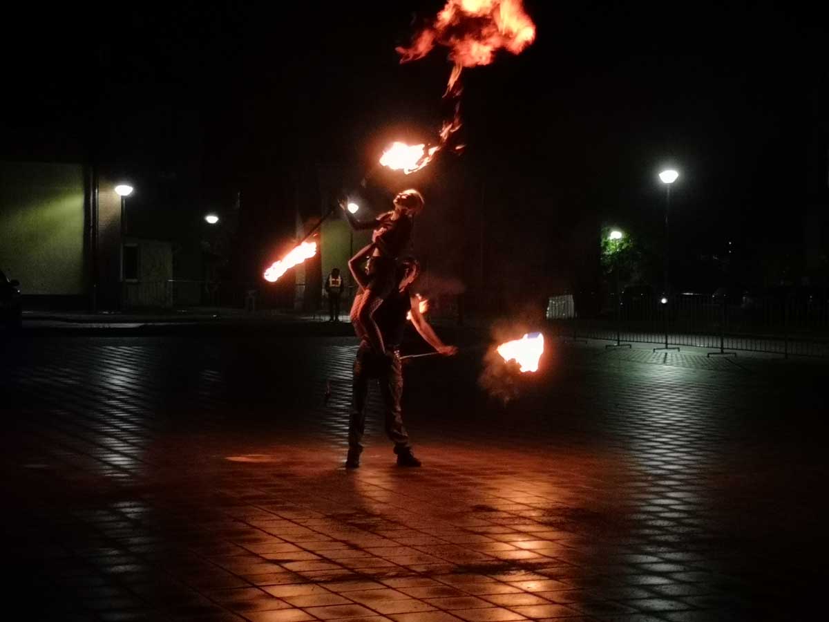 Drugiego dnia festiwalu uczestnicy wzięli udział w warsztatach kuglarskich, które zakończyły się wspólnym pokazem – widowiskowym spektaklem „OSTATNI STOS”, przygotowanym i wykonanym przez wszystkie zaproszone grupy. Na scenie pojawili się m.in.: gospodarze – TRANSFUZJA, TRANSFUZJA ART, TRANSFUZJA MINI, WERNISAŻ – oraz goście: FLASH ZONE Dom Kultury w Gołdapi, MSTW z Mrągowa i Marcin Król.