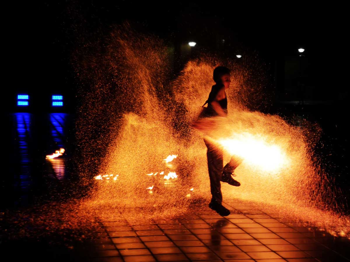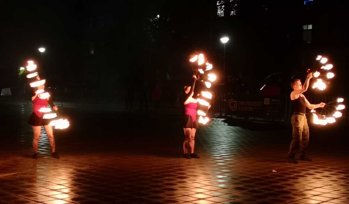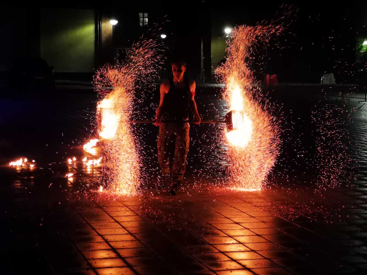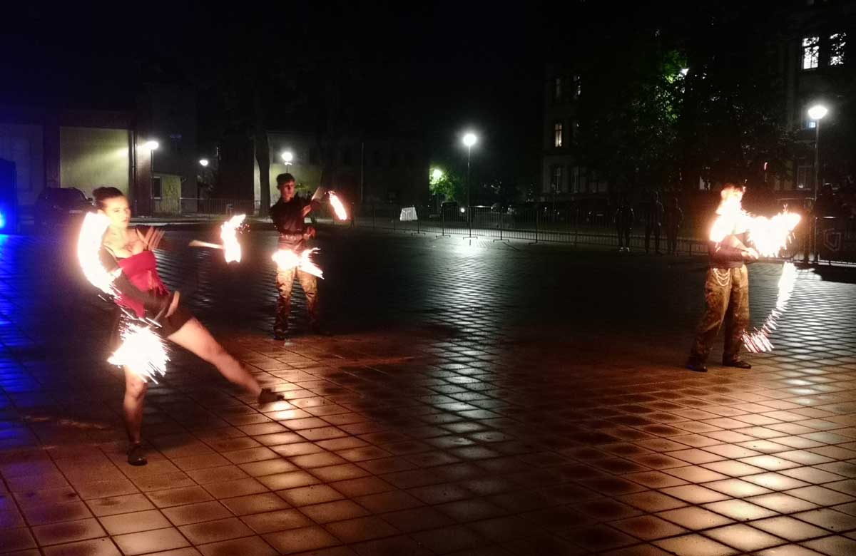 Drugiego dnia festiwalu uczestnicy wzięli udział w warsztatach kuglarskich, które zakończyły się wspólnym pokazem – widowiskowym spektaklem „OSTATNI STOS”, przygotowanym i wykonanym przez wszystkie zaproszone grupy. Na scenie pojawili się m.in.: gospodarze – TRANSFUZJA, TRANSFUZJA ART, TRANSFUZJA MINI, WERNISAŻ – oraz goście: FLASH ZONE Dom Kultury w Gołdapi, MSTW z Mrągowa i Marcin Król.