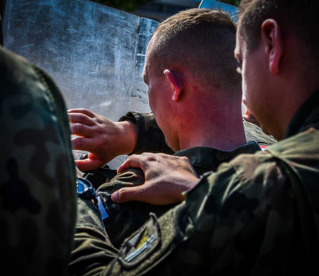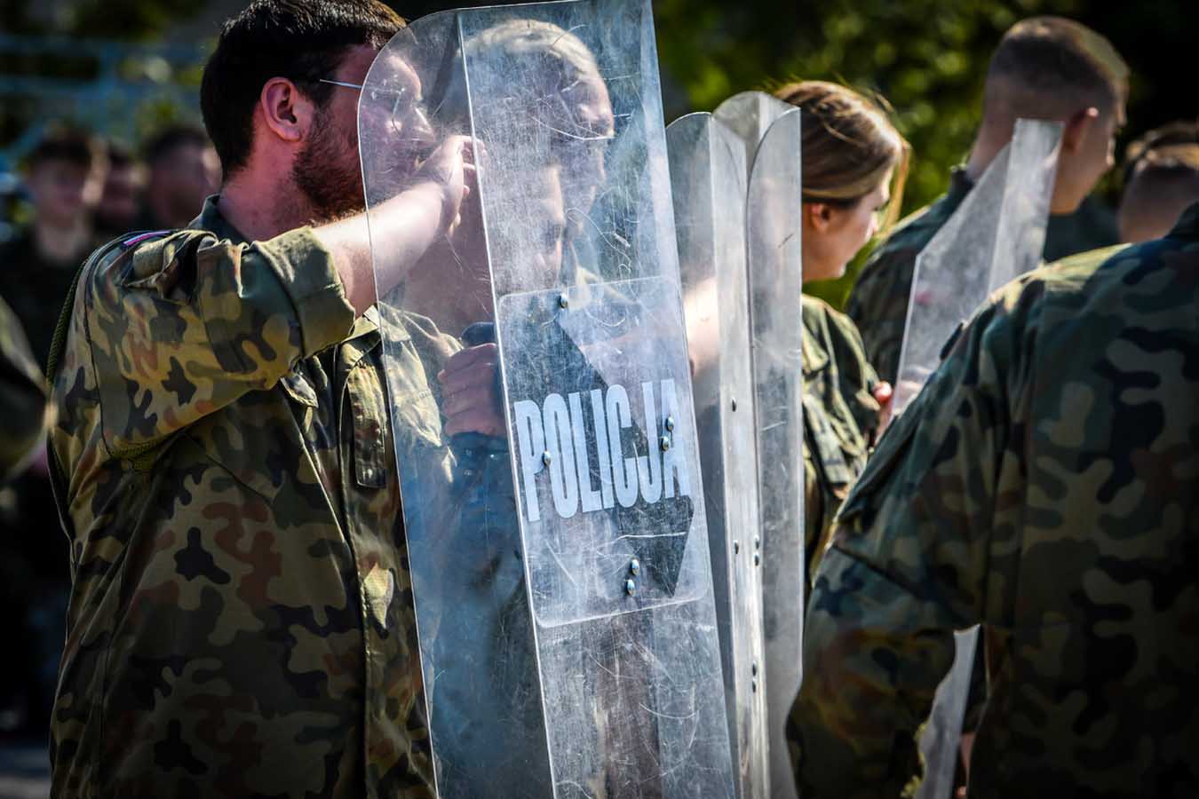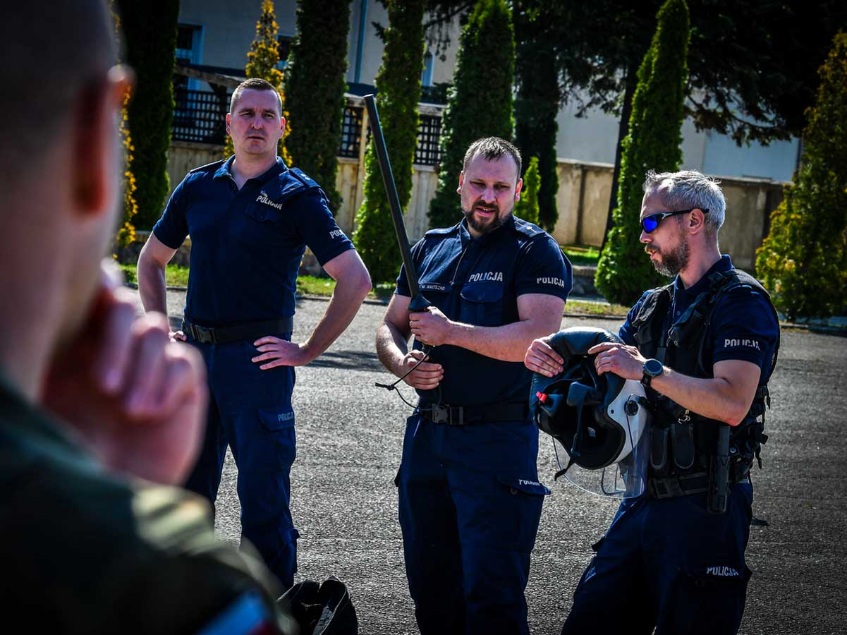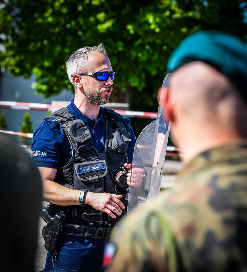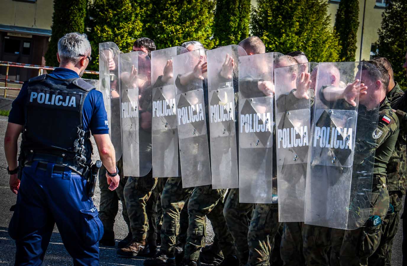 Jedno z takich szkoleń odbyło się w środę (28 maja). Funkcjonariusze zapoznali żołnierzy z zasadami formowania tyraliery policyjnej oraz użycia środków przymusu bezpośredniego. Ćwiczyli z żołnierzami sposoby ochrony przed atakami z użyciem kamieni i noży, operowania w szyku bojowym oraz użycia tarcz i miotaczy gazu. Policjanci omówili zasady działania i przybliżyli sposób wykorzystania strzelby gładkolufowej oraz amunicji niepenetracyjnej.