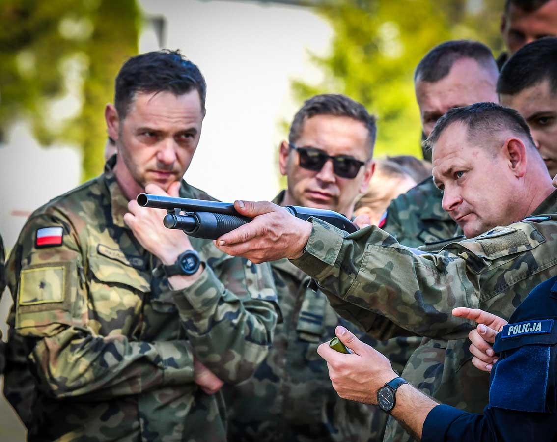 Policjanci z Komendy Powiatowej Policji w Gołdapi aktywnie włączyli się w proces szkoleniowy żołnierzy, którzy pełnią służbę na polsko – białoruskiej granicy. Policyjni instruktorzy dzielą się wieloletnim doświadczeniem w zakresie technik i taktyk interwencji wobec osób, które chcą nielegalnie przekroczyć granicę, jak również w obszarze obsługi broni gładkolufowej.