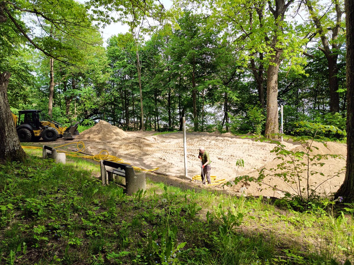 Wakacje już za miesiąc, przygotowujemy więc infrastrukturę turystyczną do sezonu. Rozpoczęliśmy prace remontowe na boisku do siatkówki plażowej nad jez. Czarnym w Pluszkiejmach: robimy odwodnienie, wymieniamy nawierzchnię i siatkę. Już za kilka dni obiekt będzie gotowy.