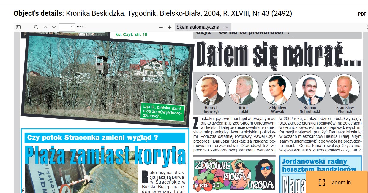 Wyjątkiem jest artykuł opublikowany 28 października 2004 roku w „Kronice Beskidzkiej”.