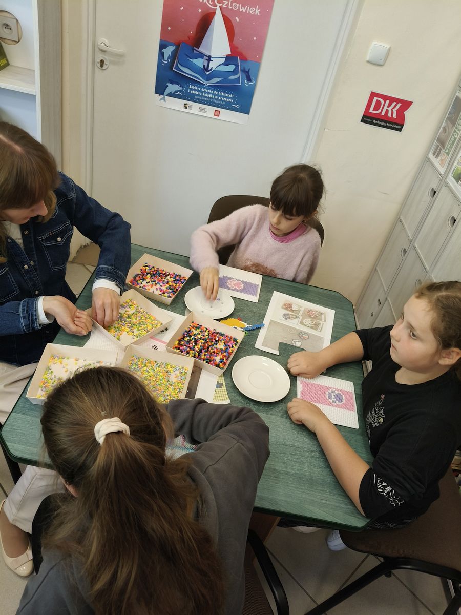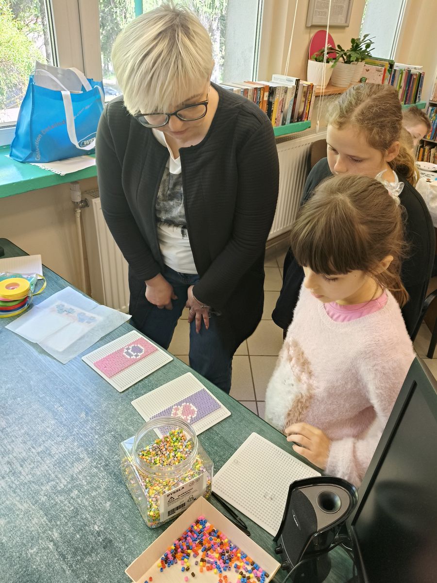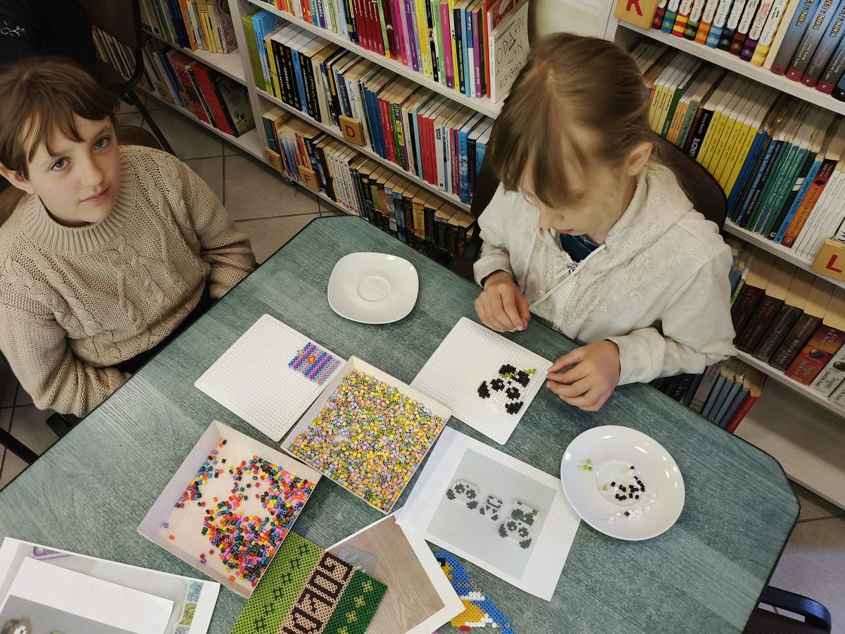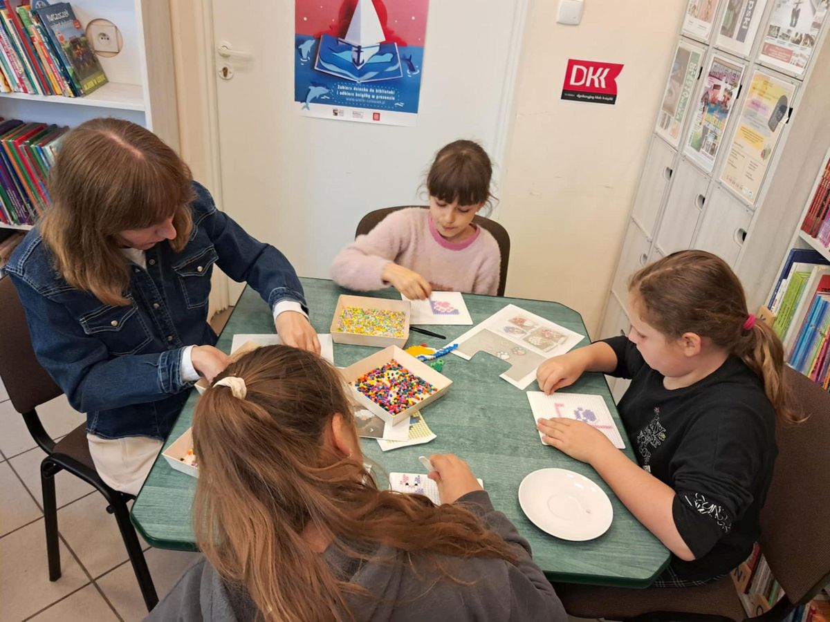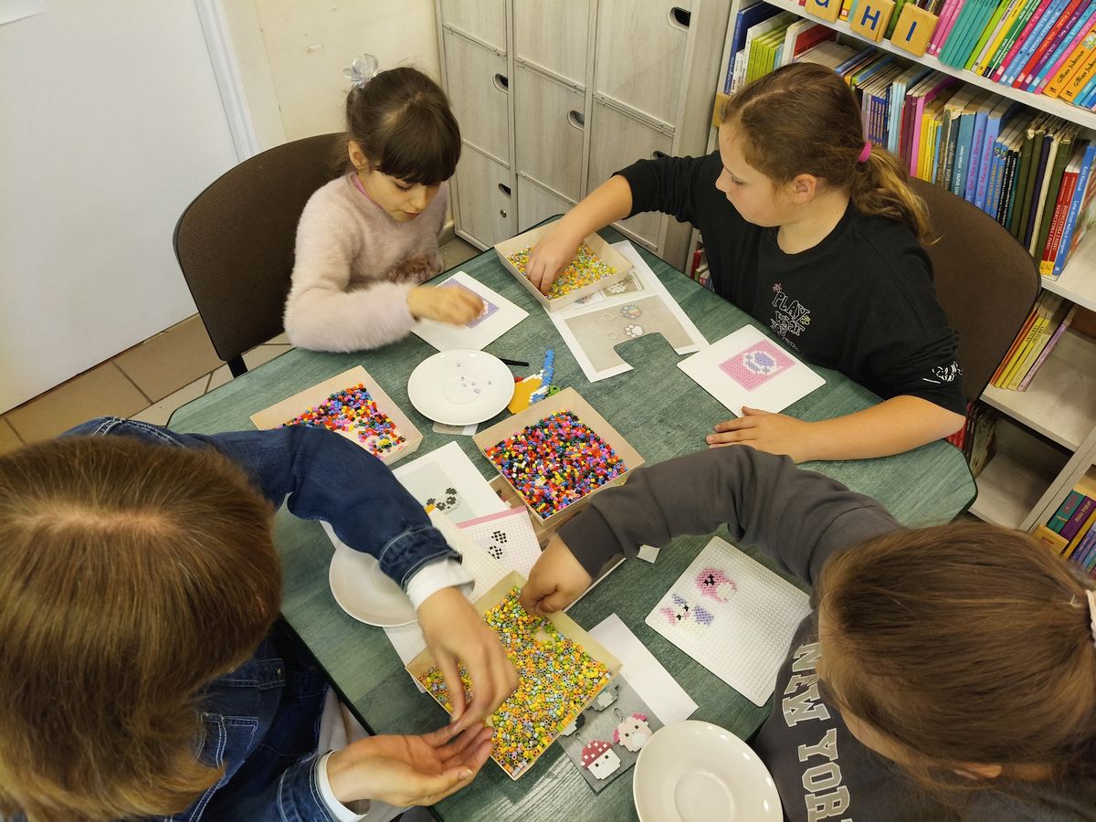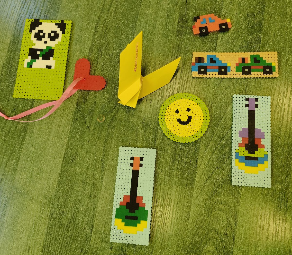Podczas spotkania uczestnicy wspólnie tworzyli zakładki do książek metodą prasowania pyssli. Praca z kolorowymi koralikami okazała się dobrą zabawą, ale także doskonałą okazją do rozwijania wyobraźni, zdolności manualnych oraz kreatywności.