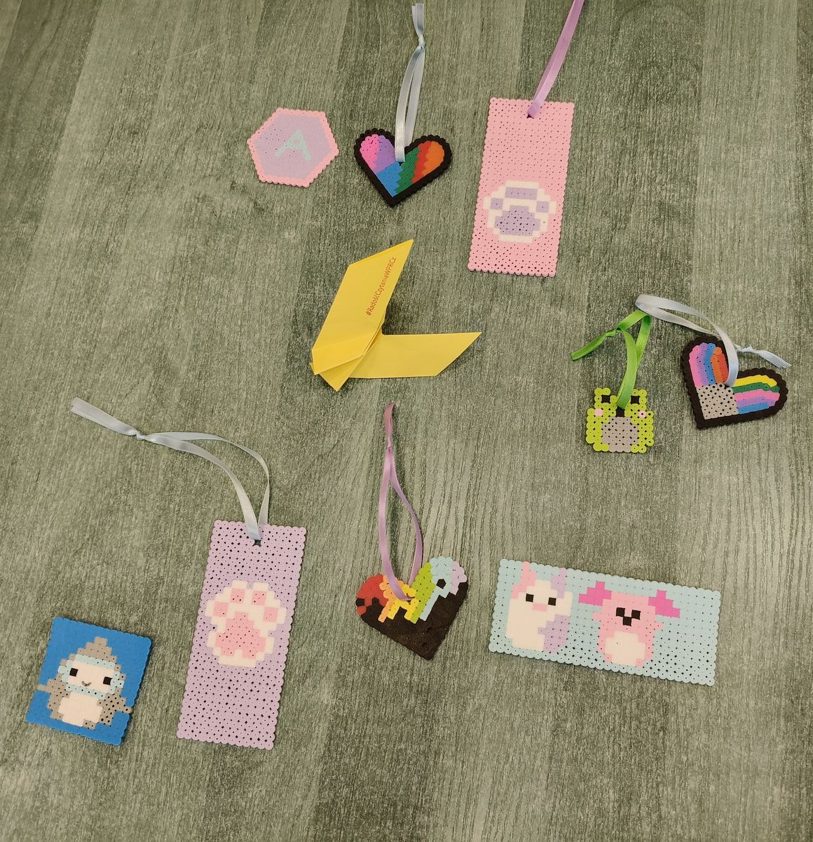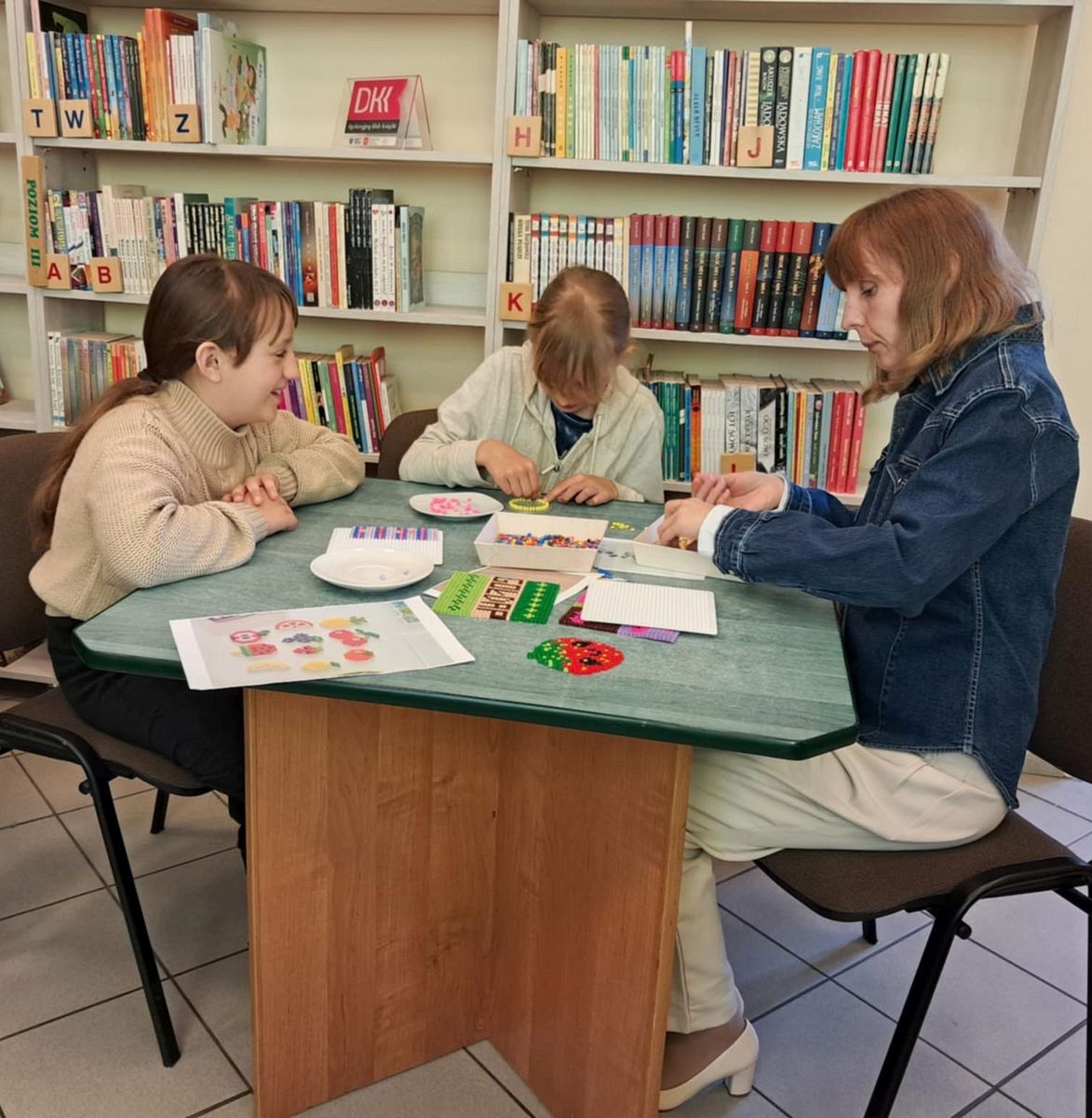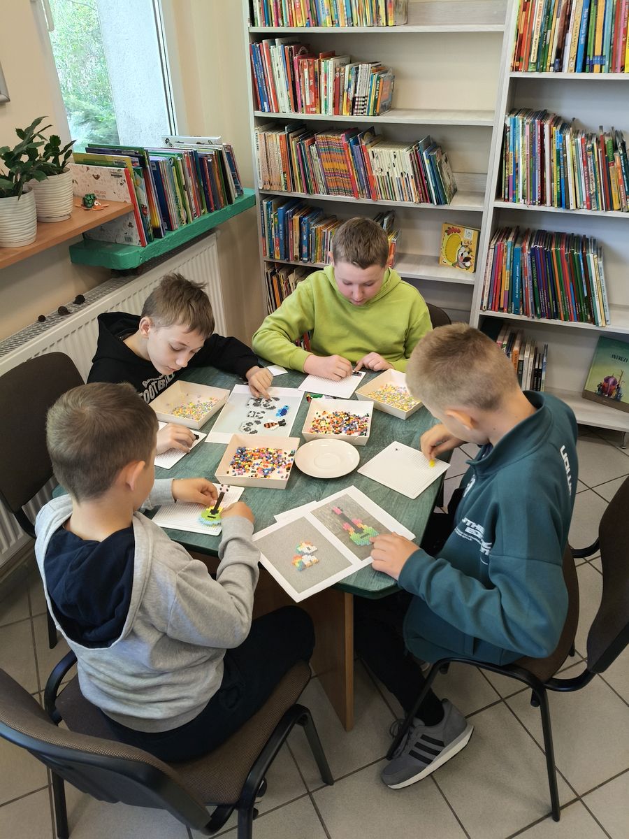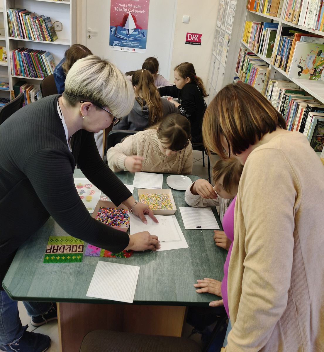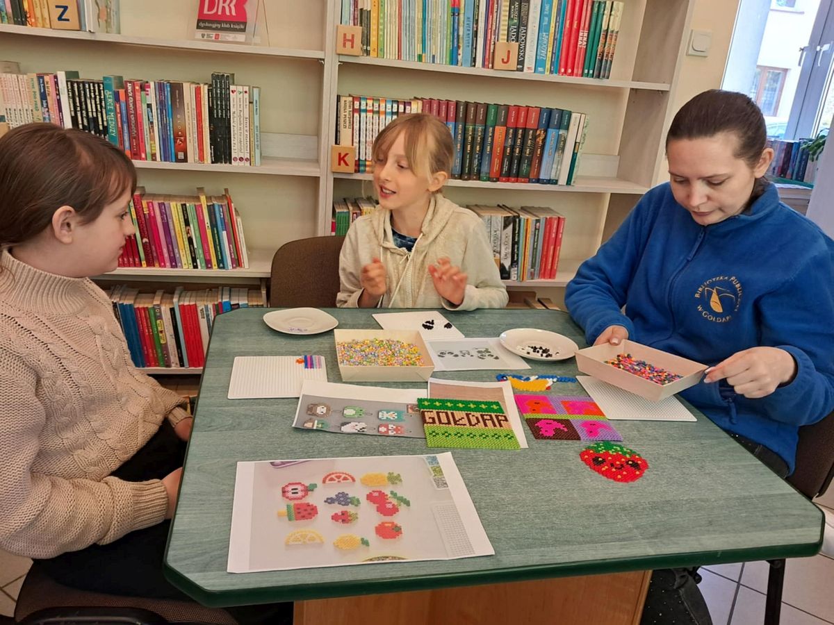 Podczas spotkania uczestnicy wspólnie tworzyli zakładki do książek metodą prasowania pyssli. Praca z kolorowymi koralikami okazała się dobrą zabawą, ale także doskonałą okazją do rozwijania wyobraźni, zdolności manualnych oraz kreatywności.