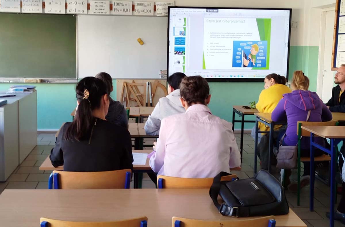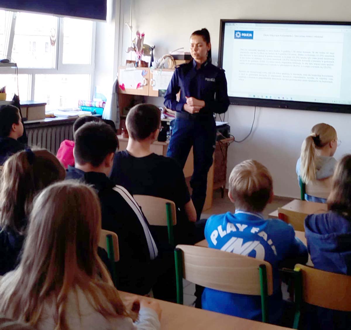 Mł asp. Marta Domańska wyjaśniła, jak rozpoznawać cyberprzemoc, jak się przed nią bronić i jak reagować w przypadku jej wystąpienia. Podkreślała jak ważne są właściwe relacje rodzinne i jak ogromną rolę odgrywają rodzice w sytuacji zagrożeń. Mówiła o sposobach rozwiazywania problemów związanych z cyberprzemocą, o zaufaniu jakie pokładają dzieci w swoich rodzicach w sytuacji, gdy napotykają na swojej drodze problemy, których nie potrafią samodzielnie rozwiązać.