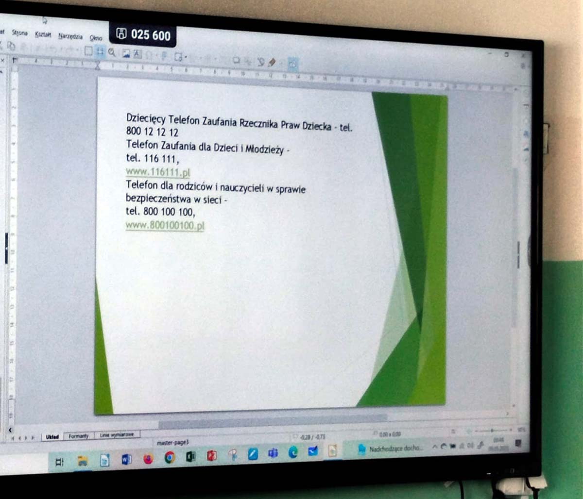 Zwróciła również uwagę na czas, często nielimitowany, jaki dzieci i młodzież „spędzają” w Internecie. Podała numery telefonów wsparcia, pod które mogą dzwonić zarówno dzieci, rodzice oraz nauczyciele w sytuacjach kryzysowych.