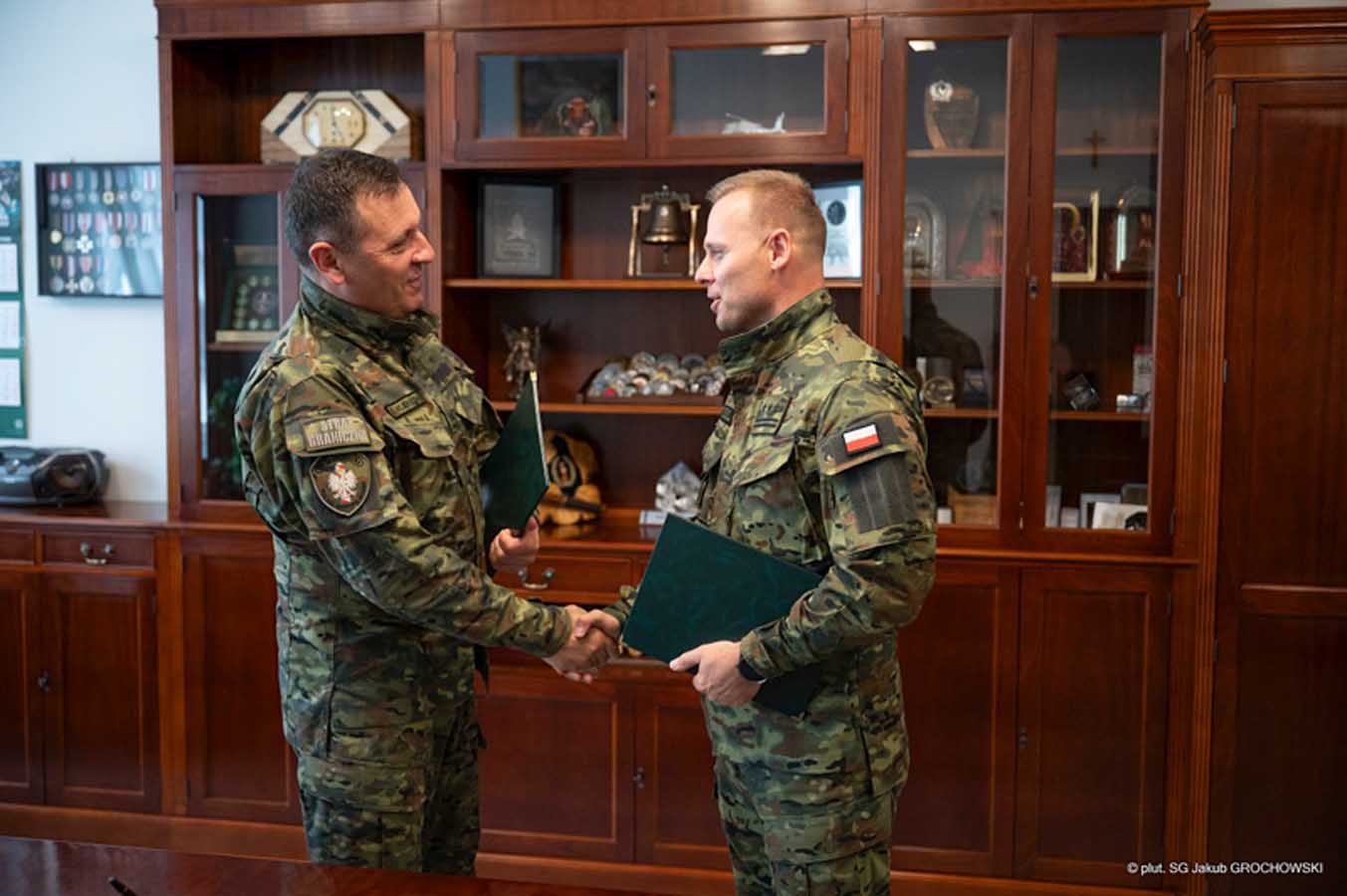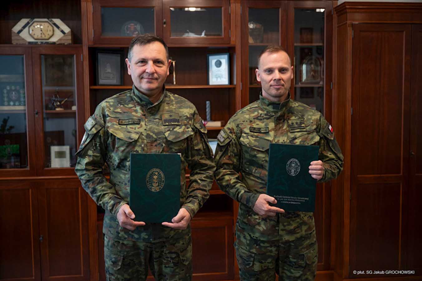 Wczoraj, Komendant Warmińsko-Mazurskiego Oddziału Straży Granicznej płk SG Daniel Wojtaszkiewicz i Komendant Podlaskiego Oddziału Straży Granicznej gen. bryg. SG Sławomir Klekotka podpisali porozumienie w sprawie współdziałania obu jednostek. Porozumienie dotyczy pełnienia służby granicznej, prowadzenia działań w przypadku przekroczenia granicy państwowej wbrew przepisom. Współpraca pomiędzy oddziałami będzie polegała m.in. na prowadzeniu kontroli legalności pobytu cudzoziemców na terytorium Rzeczypospolitej Polskiej. Porozumienie zawiera również wymianę informacji o zagrożeniach migracyjnych w rejonie służbowego działania oddziału.