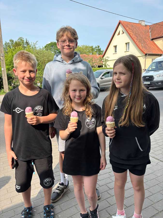 A na zakończenie ciężkiego dnia zawodów z okazji Dnia Dziecka najlepsze lody – oczywiście w Baniach Mazurskich.
