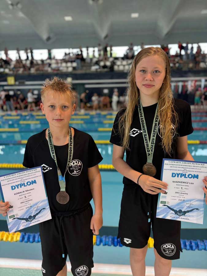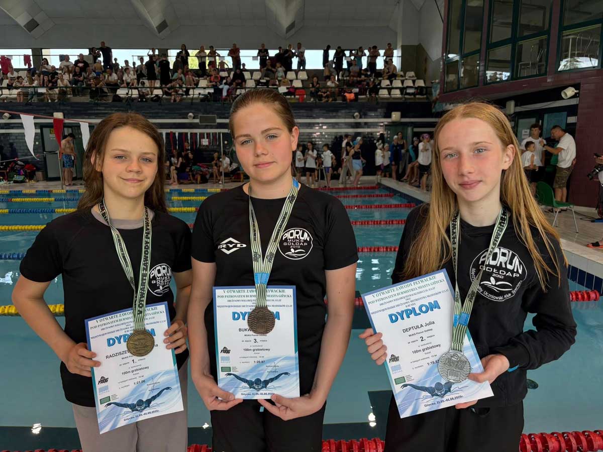 Trzynastoosobowa reprezentacja MUKS PIORUN Gołdap pod opieką trenera Adama Kozłowskiego wystartowała w V Otwartych Zawodów Pływackich pod Patronatem Burmistrza Miasta Giżycka, Drużynowym Wieloboju Pływackim Dzieci w wieku 10 i 11 lat oraz Międzywojewódzkich Drużynowych Mistrzostwach Młodzików 12 lat. Do rywalizacji stanęło 212 zawodników z 14 klubów. Nasi zawodnicy spisali się znakomicie i wywalczyli 25 medali (5 złotych, 8 srebrnych i 12 brązowych).
