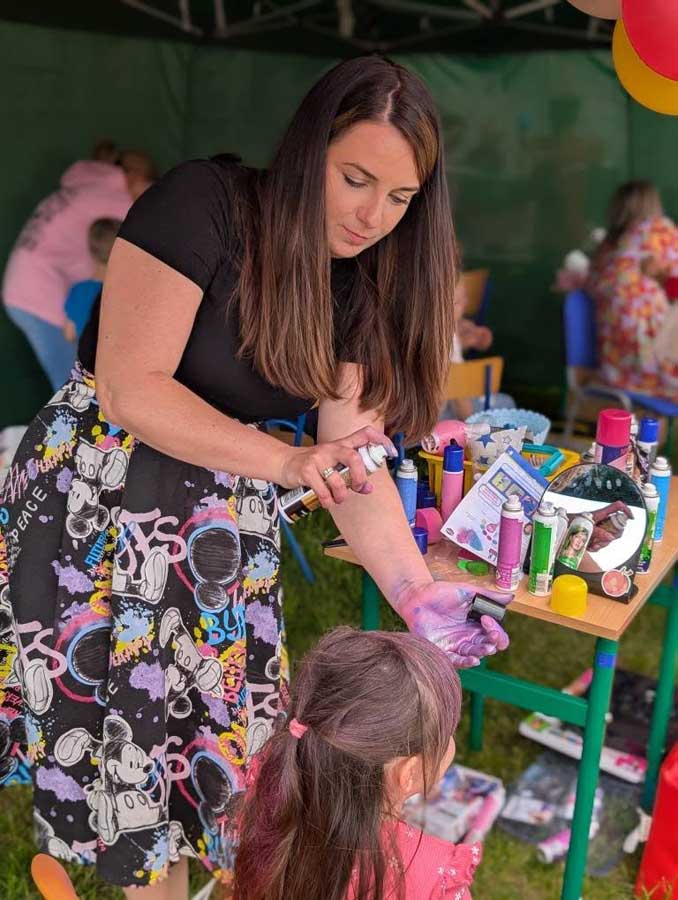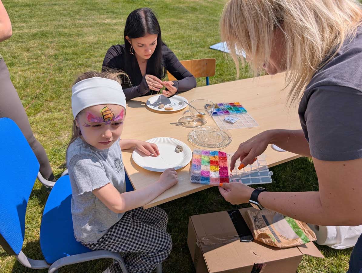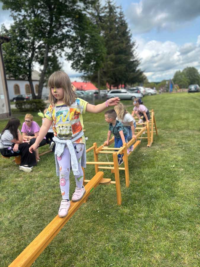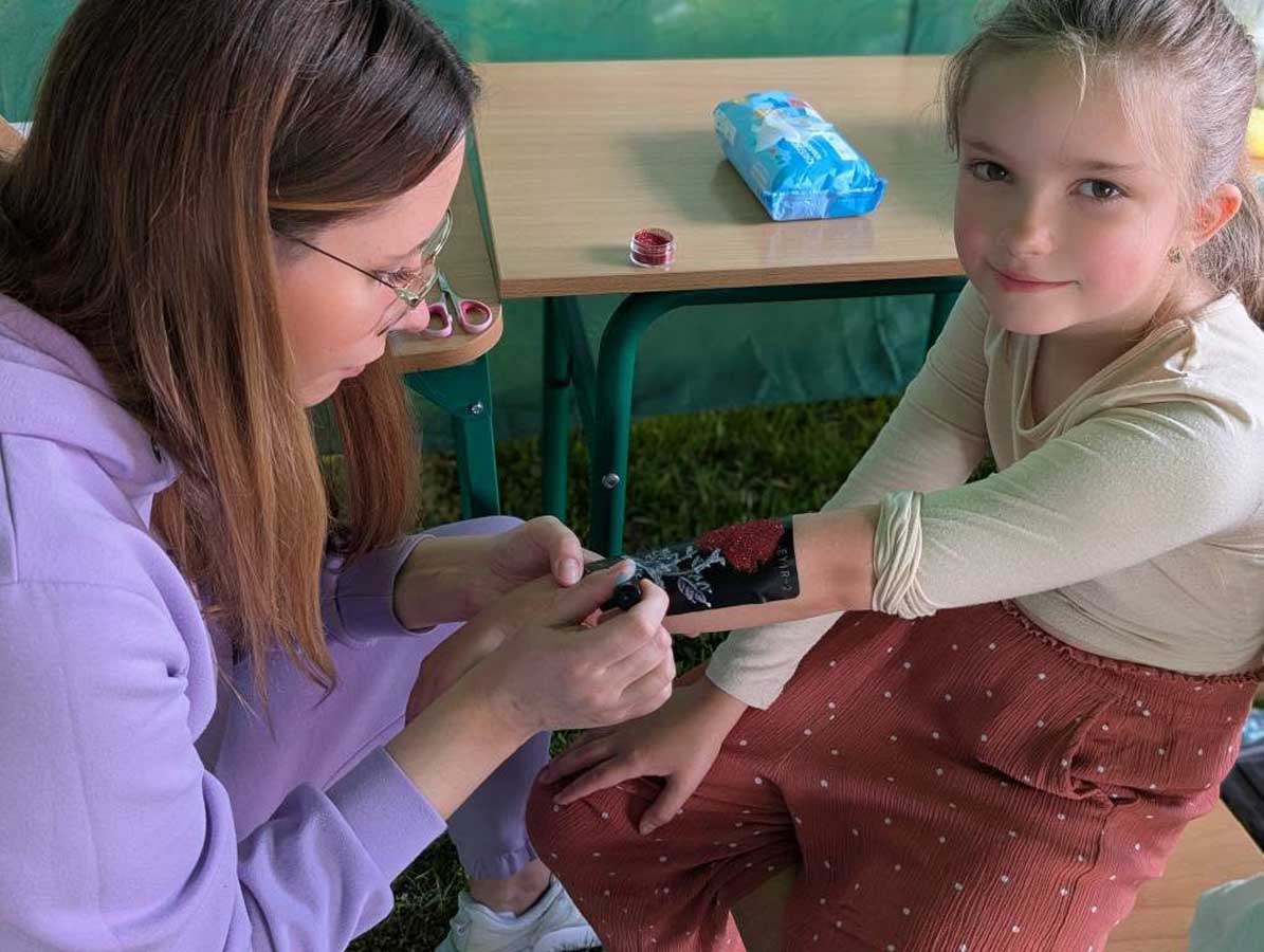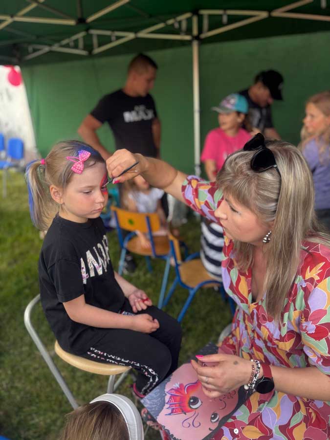 Następnie wszyscy mogli skorzystać z przygotowanych dla nich specjalnie atrakcji. Uczestnicy szaleli na dmuchańcach, brali udział w rodzinnych konkursach, tworzyli piękne bransoletki. Nie zabrakło też tak bardzo uwielbianej przez dzieci waty cukrowej, popcornu, kiełbaski z grilla, lodów czy batonów. Największym zainteresowaniem jak zawsze cieszyło się malowanie twarzy i włosów, a także robienie tymczasowych tatuaży. Rodzinnej atmosferze towarzyszyły śmiechy i dobry humor.