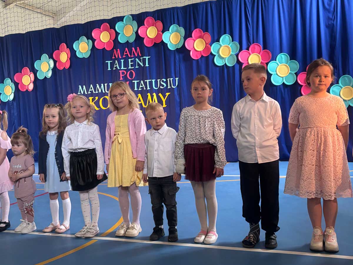 Młodzi artyści śpiewali przeboje swoich ulubionych wykonawców, zaskakując nie tylko odwagą, ale i niezwykłym wyczuciem rytmu i melodii. Nie zabrakło również tanecznych popisów – dzieci zaprezentowały układy choreograficzne do topowych hitów, porywając do wspólnego rytmu całą publiczność. Wśród salw śmiechu i gromkich braw, pojawiły się też momenty pełne wzruszenia. Szczególnie poruszający był występ przedszkolaków i uczniów klas 1–3, którzy przygotowali wyjątkowe piosenki dedykowane swoim rodzicom. Mali wykonawcy śpiewali zarówno w języku polskim, jak i angielskim, udowadniając, że potrafią połączyć zabawę z nauką i sercem.