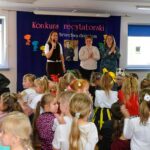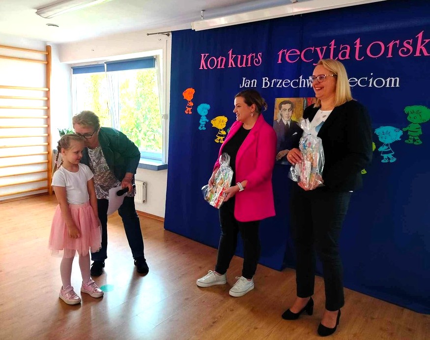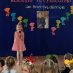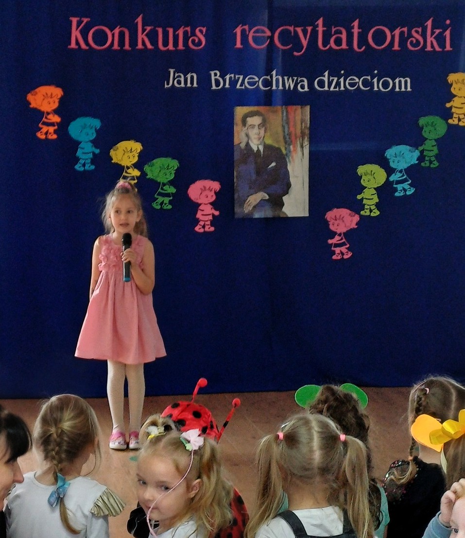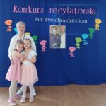 Naszą szkołę reprezentowały: Wiktoria, która z dużym zaangażowaniem zaprezentowała wiersz „Samochwała”, oraz Marysia, która z wdziękiem przedstawiła utwór „Tańcowała igła z nitką”.
