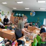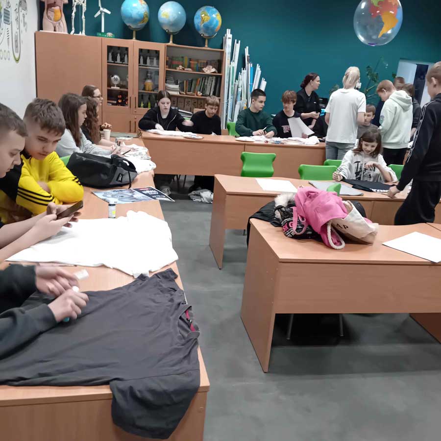 Podczas twórczych warsztatów z panią Renatą Wójcik stare bluzki zyskały nowe życie – dzięki oryginalnym wzorom i barwom zamieniły się w unikalne ubrania z przesłaniem. Inna grupa uczniów pod okiem nauczycieli tworzyła torby z recyklingu – ze starych koszulek i firanek powstały ekologiczne alternatywy dla plastikowych reklamówek. Dodatkowo, pani Elżbieta Milewska obdarowała dzieci własnoręcznie wykonanymi siatkami na zakupy – praktycznymi i pięknymi przykładami świadomego konsumpcjonizmu.