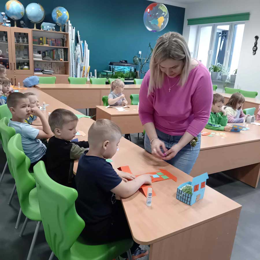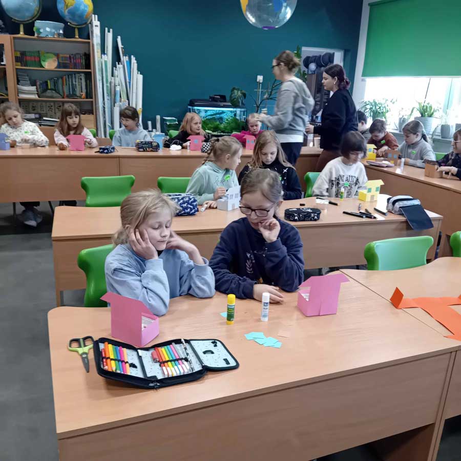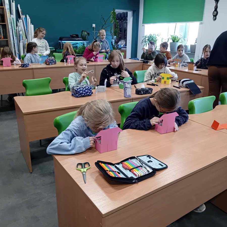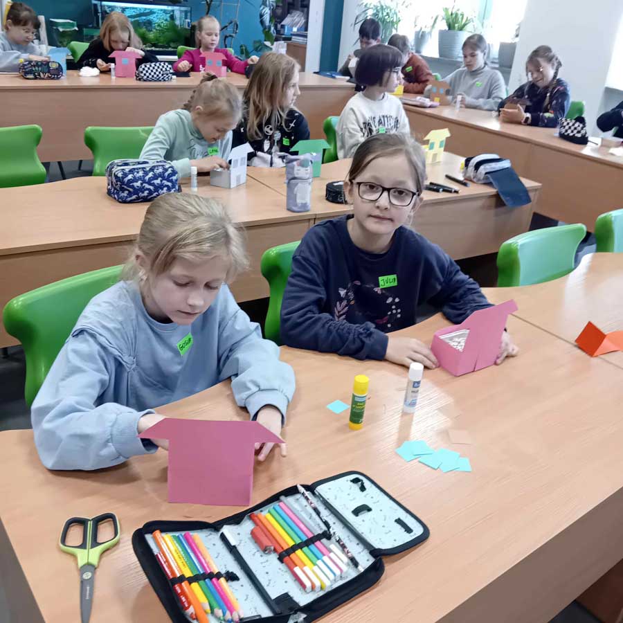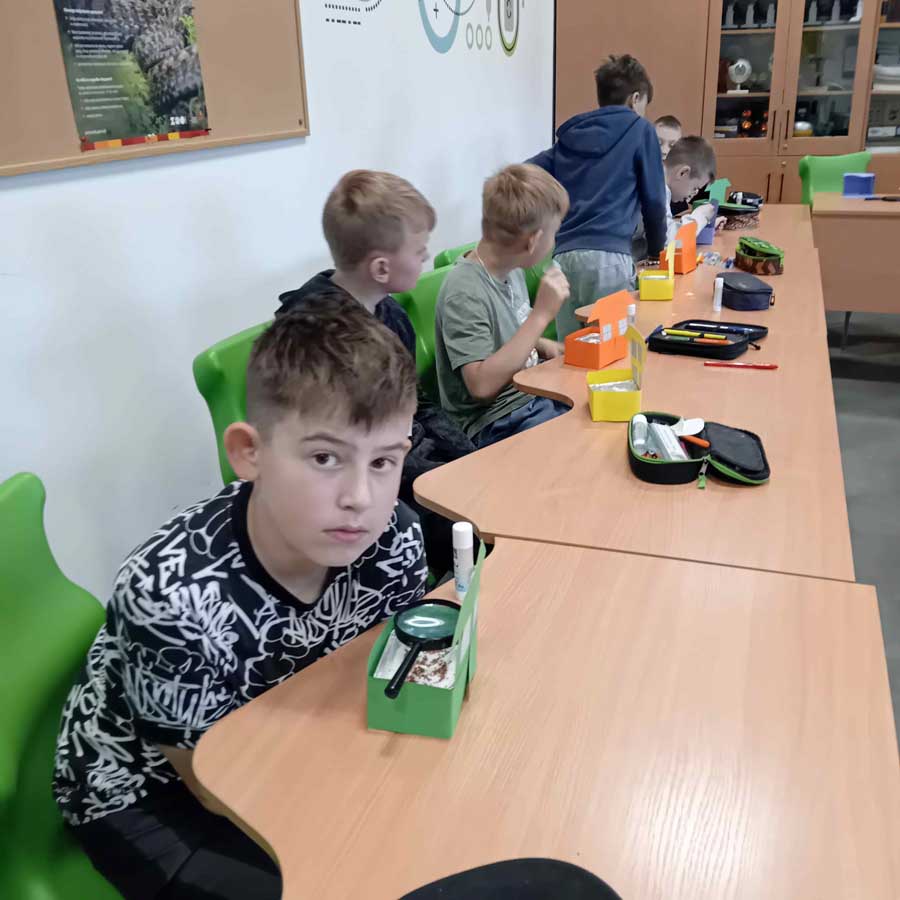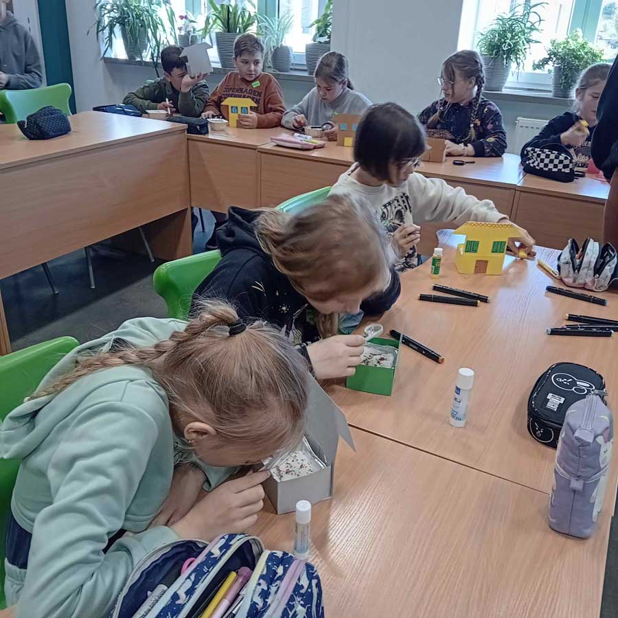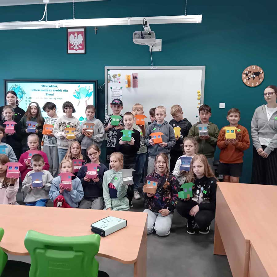 W maju uczniowie zamienili się w ogrodników i stworzyli własne domki z mini ogródkami z rzeżuchą. Przypomnieli sobie, że kwietne łąki i miejskie zieleńce to nie tylko ozdoba – to także ważne miejsce retencji wody i siedlisko dla owadów, które są kluczowe dla bioróżnorodności.