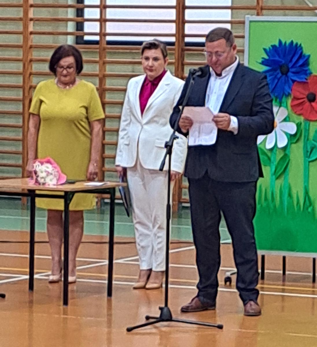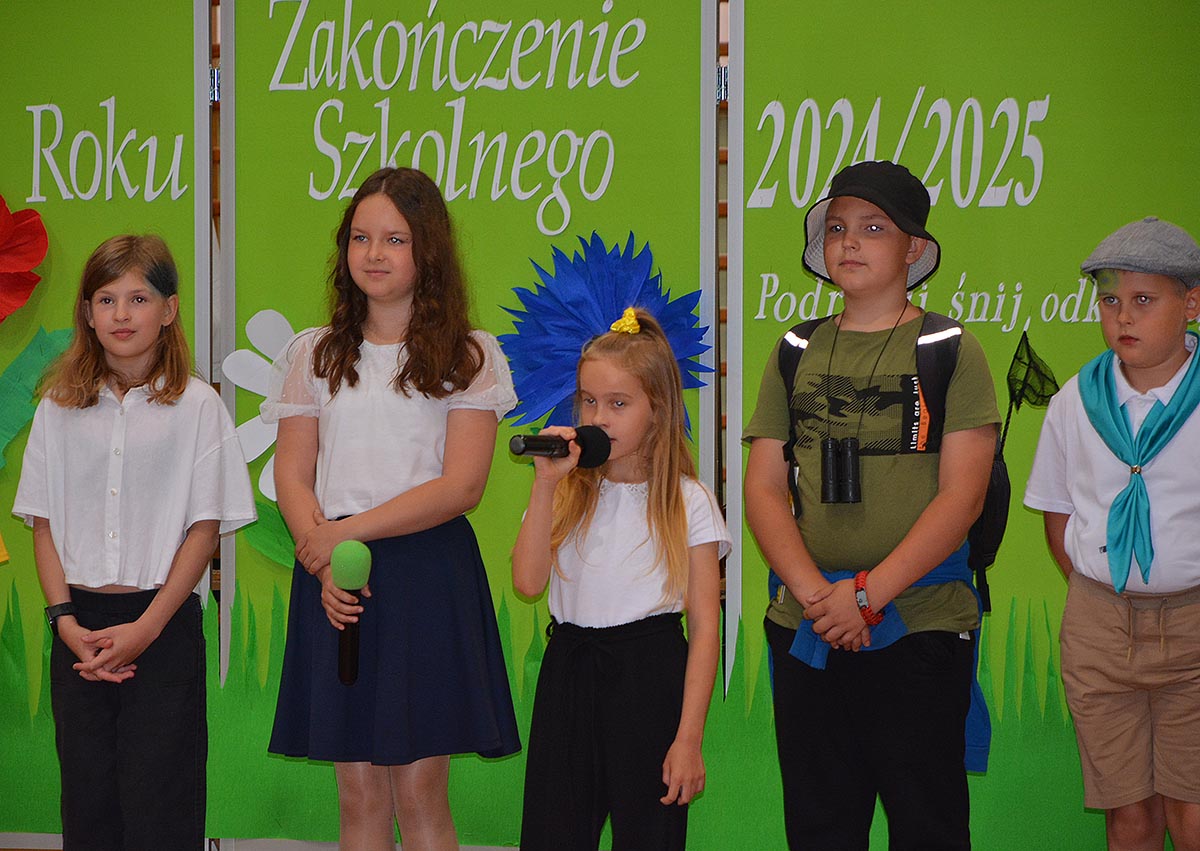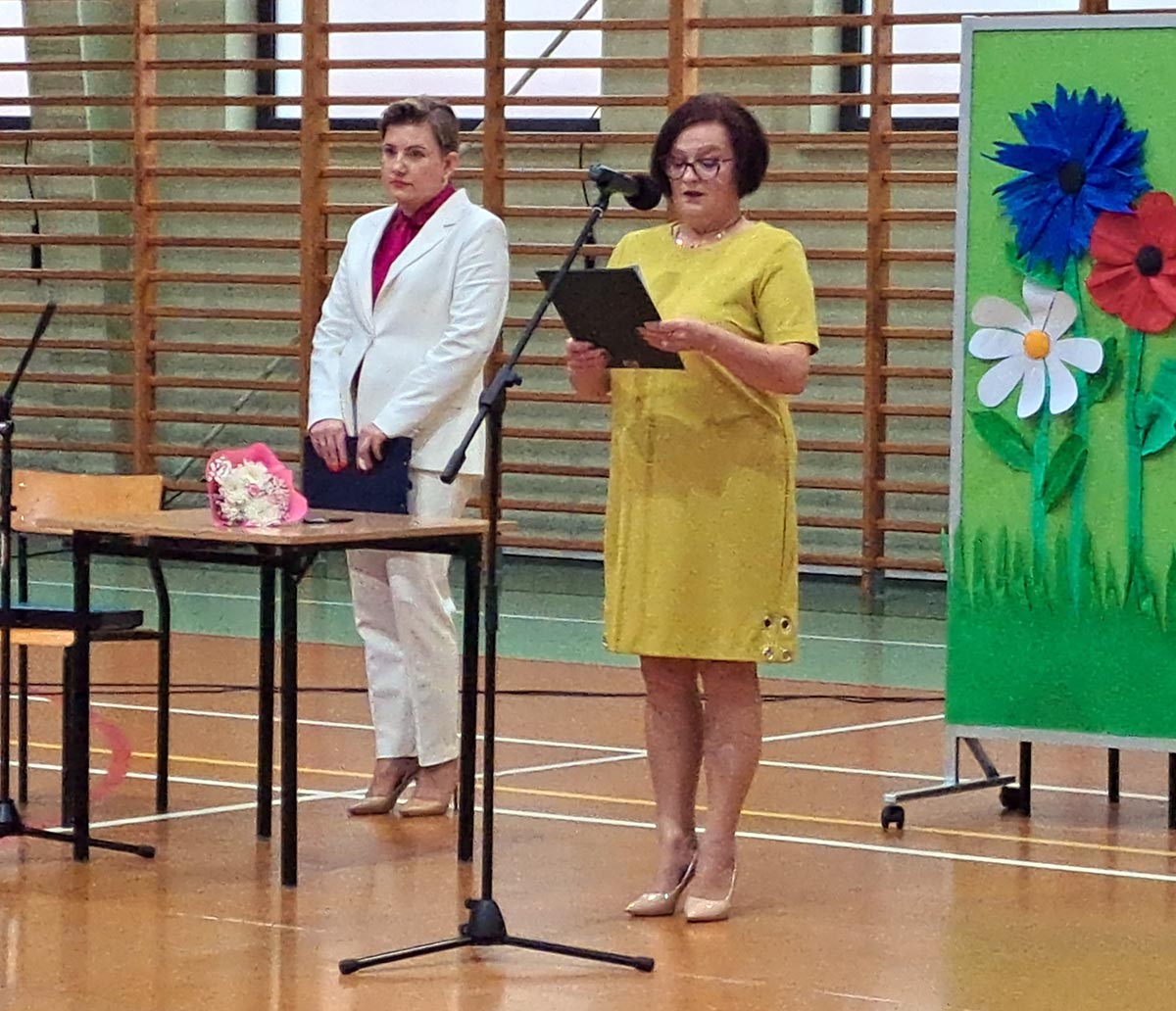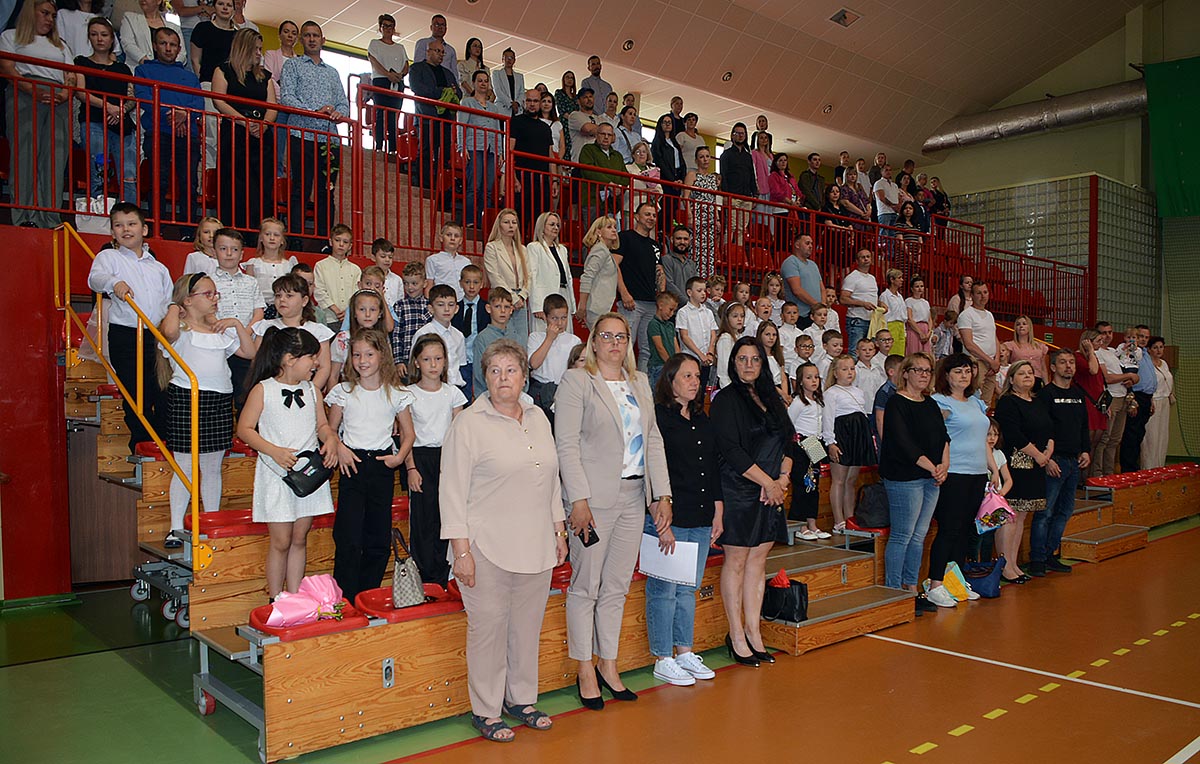 Najmłodsi zaprezentowali swoje umiejętności artystyczne w tańcu i krótkiej, humorystycznej inscenizacji. Miłych wakacji życzyli – dyrektor Bożena Kalinowska, przewodnicząca Rady Rodziców, przedstawicielka gołdapskiej KPP i samorządowcy.