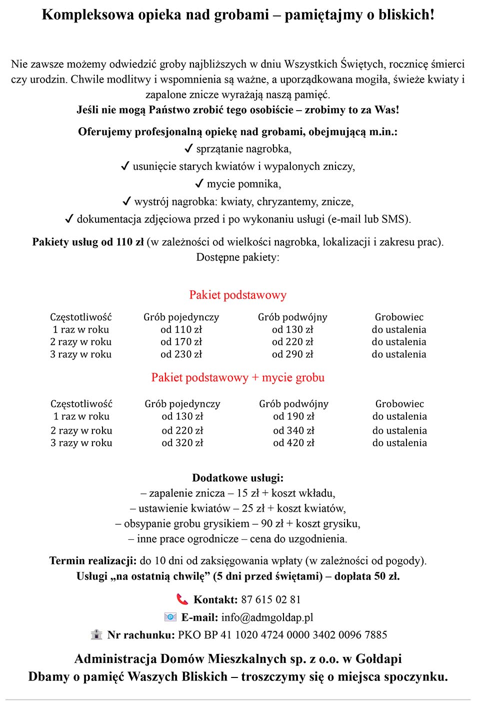 Ogłoszenie. Kompleksowa opieka nad grobami – pamiętajmy o bliskich!