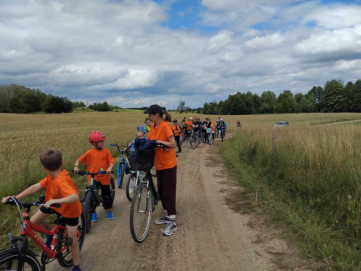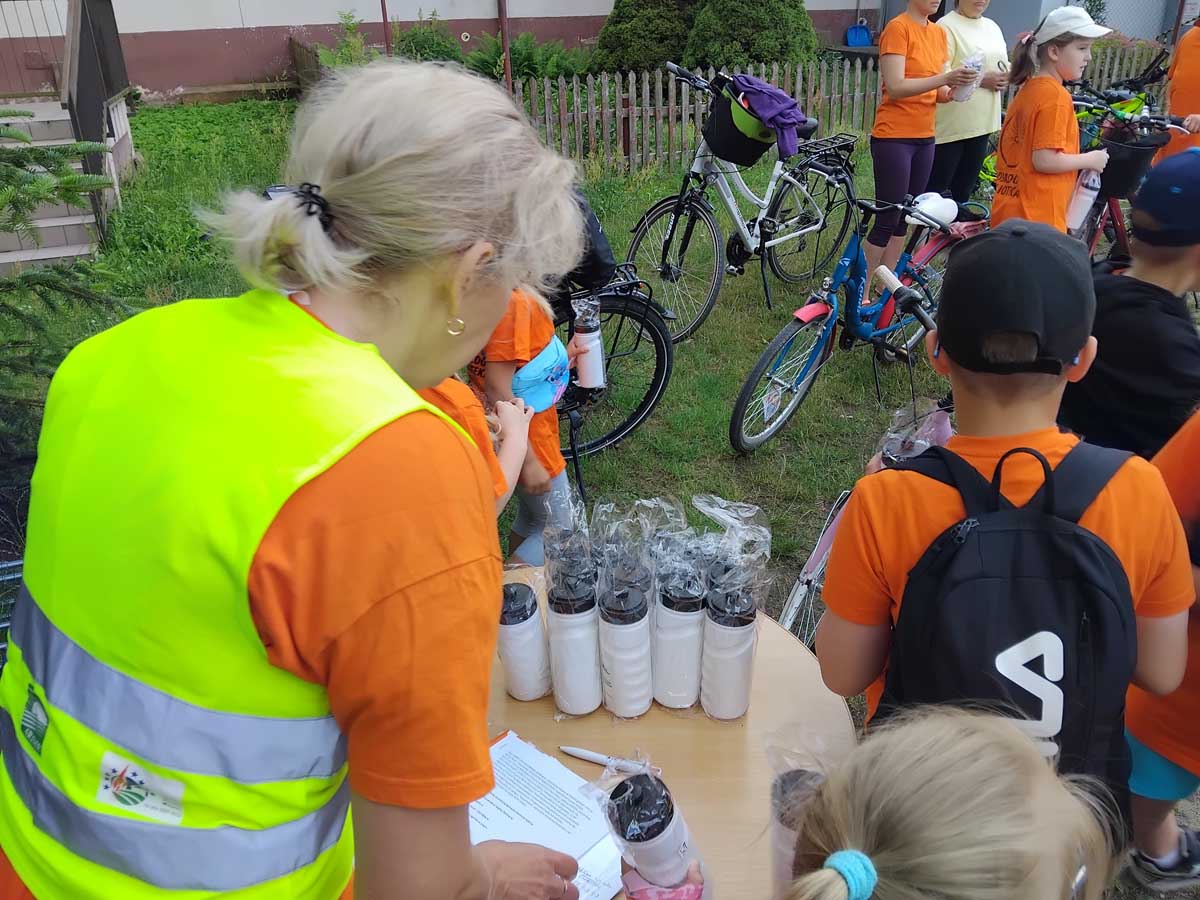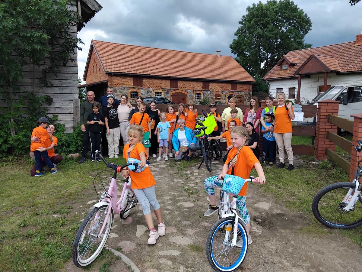 Po godzinie szesnastej wyruszyliśmy w drogę powrotną. Dziękujemy wszystkim uczestnikom rajdu za wspólnie aktywnie spędzony czas. Wielkie gratulacje najmłodszemu uczestnikowi wycieczki rowerowej, którzy mimo małych kółek w rowerach pokonali całą trasę około 16 km z dużym uśmiechem na twarzy. Dziękujemy Łukaszowi Kuliś wójtowi gminy Banie Mazurskie za prezenty dla wszystkich uczestników rajdu, bidony i zawieszki do kluczy.