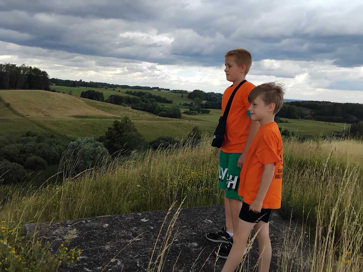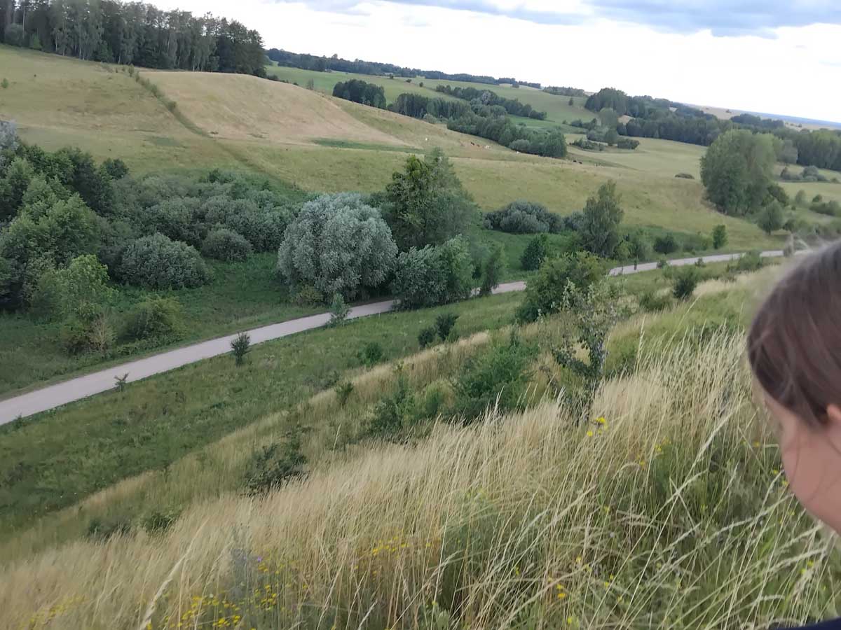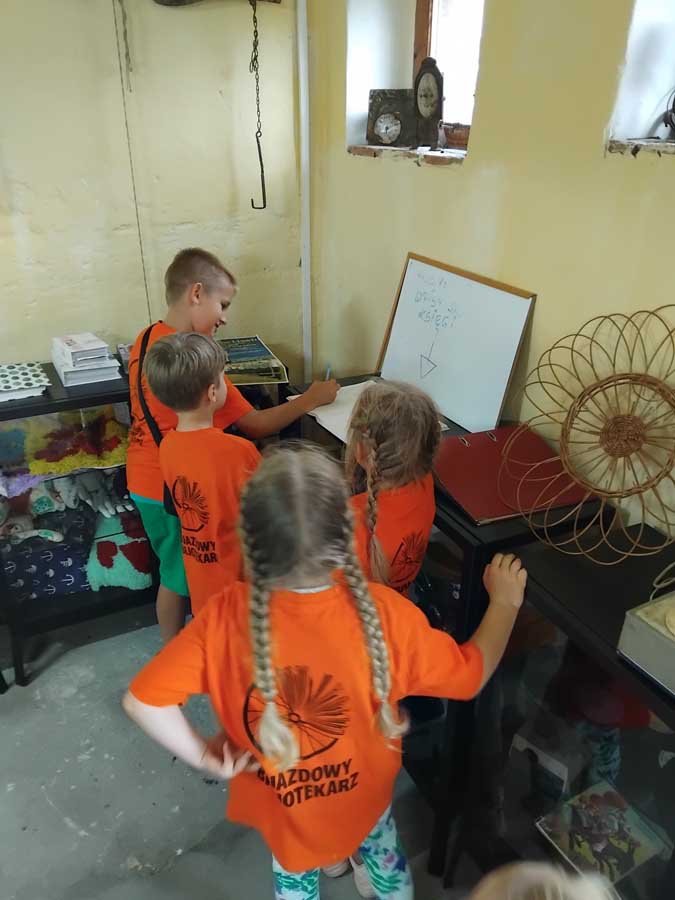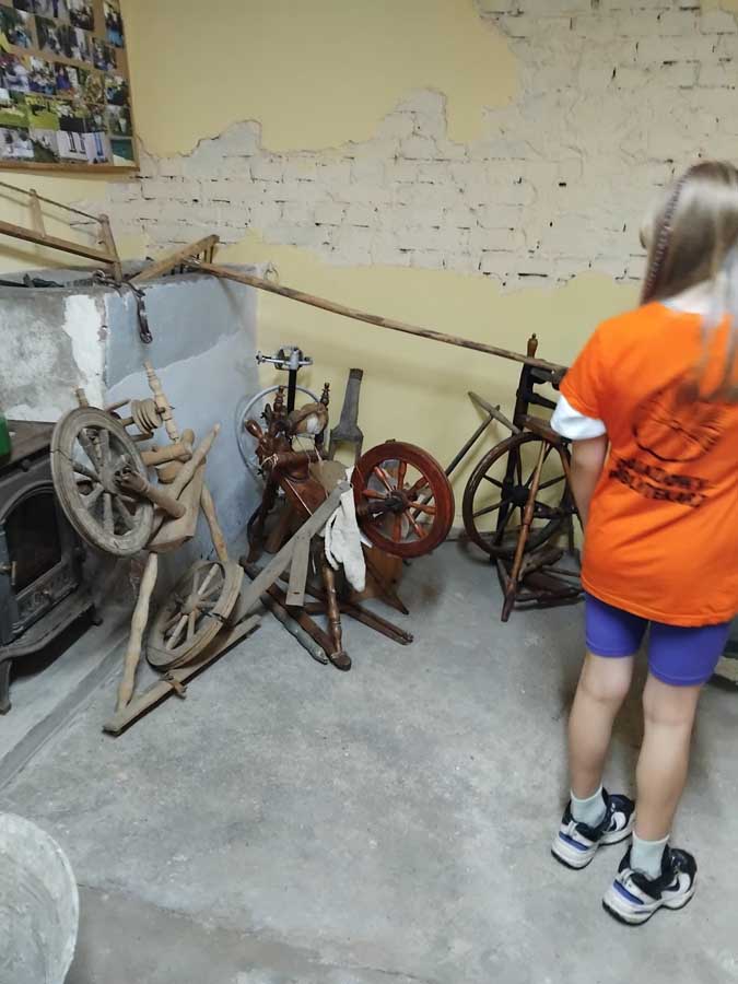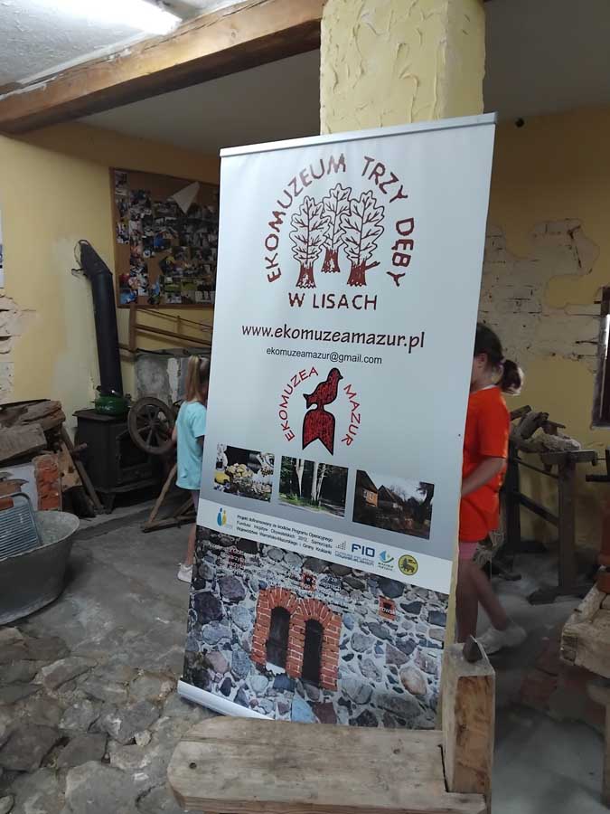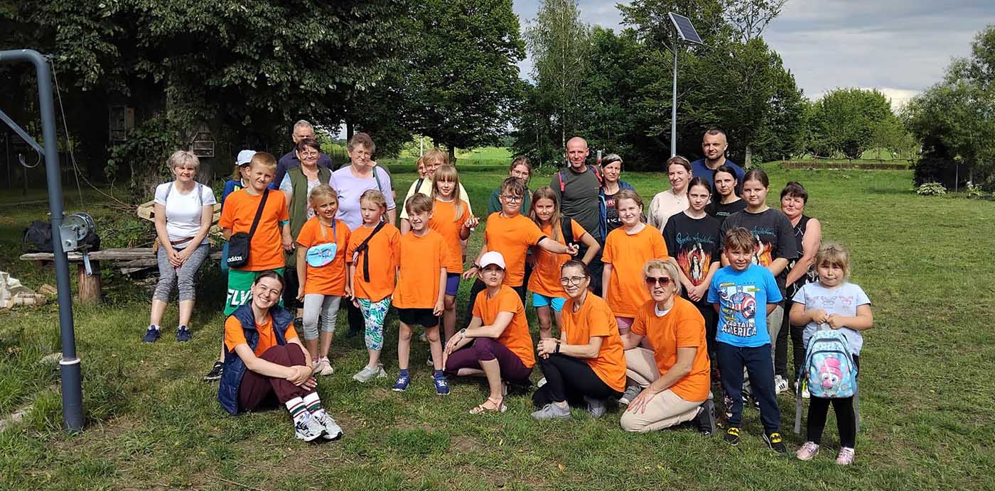 Uczestnicy chętnie wspięli się na wzgórze i odkrywali jego sekrety. Pełni wrażeń pojechaliśmy dalej w kierunku wsi Lisy, w poszukiwaniu dalszych tajemnic naszej gminy. W Lisach czekała na nas kolejna tym razem słodka niespodzianka – pyszne ciasto, kawa, ognisko przygotowane przez mieszkańców sołectwa Lisy z panią sołtys Jadwigą na czele. W Lisach zajrzeliśmy do Ekomuzeum „Trzy Dęby” skrywające historię mieszkańców wsi.