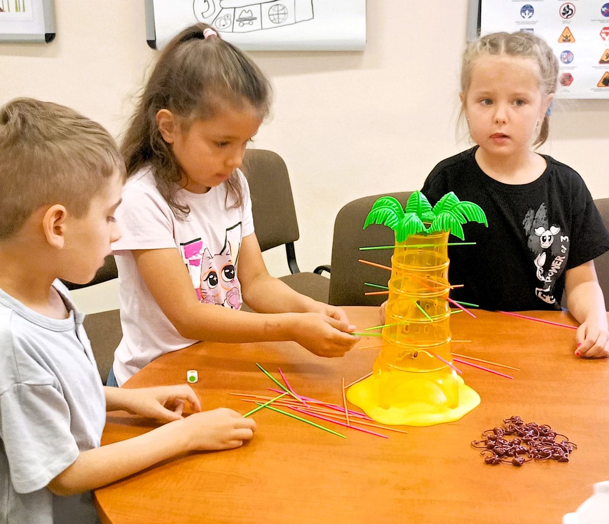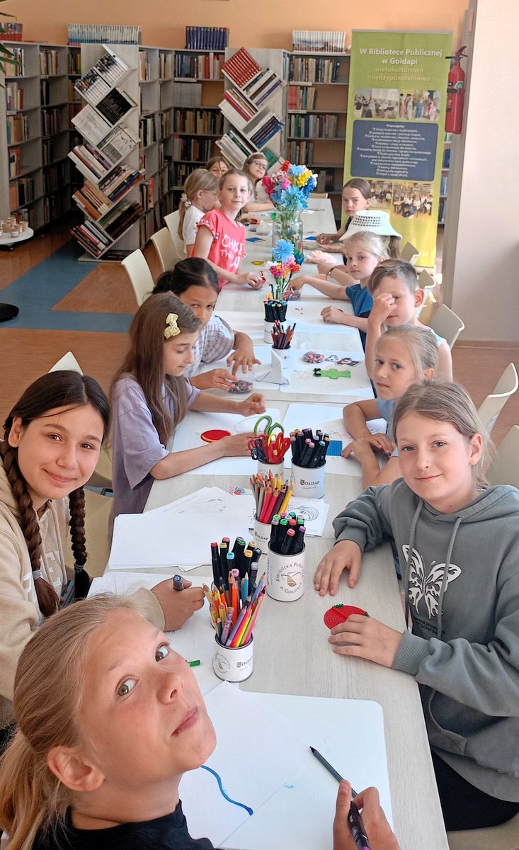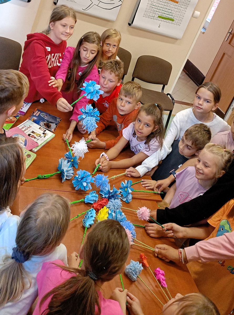 Śledztwo rozpoczęliśmy w Bibliotece Publicznej w Gołdapi – od poznania zakamarków budynku i niezwykłych opowieści oraz książkowych tropów. Dzięki czytaniu bajek z Albikiem oraz magicznemu interaktywnemu teatrzykowi, przenieśliśmy się do świata baśni i bohaterów, którzy podsunęli nam pierwsze wskazówki do dalszych przygód. Każdy tropiciel stworzył własne prace plastyczne – powstały kolorowe obrazki z koralików oraz barwne kwiatki. Zanim wyruszyliśmy w teren, nie mogło zabraknąć gier i zabaw ruchowych na świeżym powietrzu – to właśnie tam ćwiczyliśmy spostrzegawczość i współpracę w grupie.