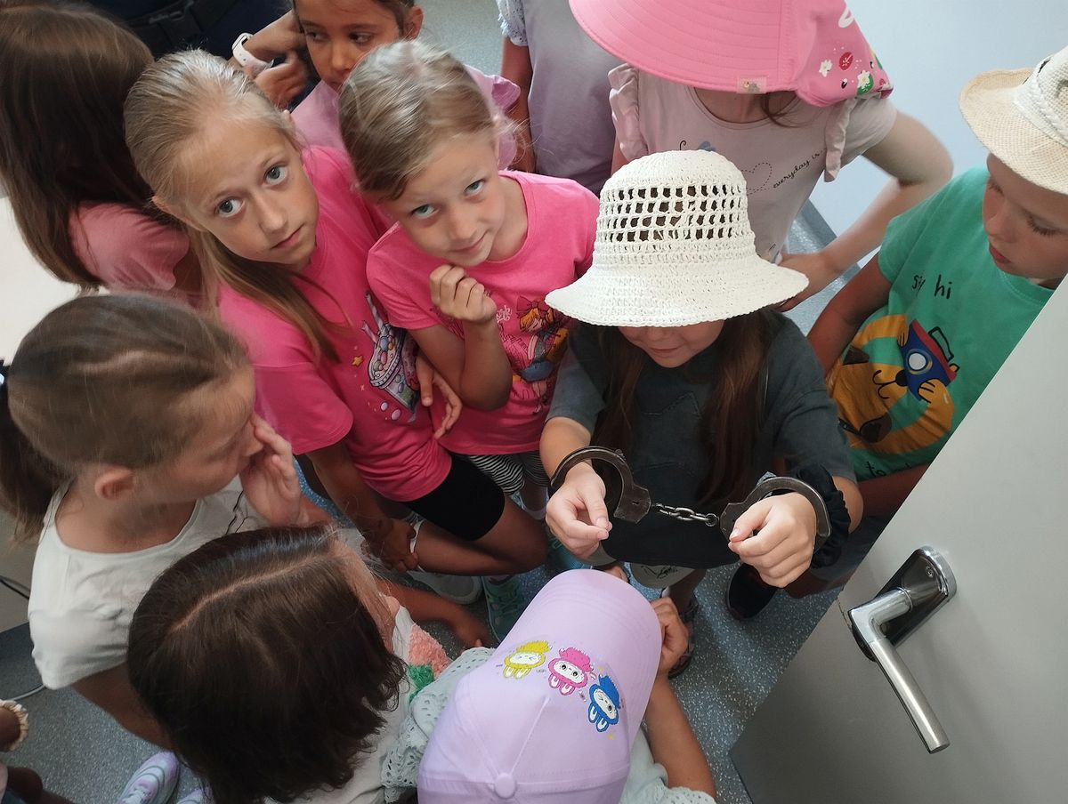 W kolejnych dniach ślad zaprowadził nas do wyjątkowych miejsc. Najpierw odwiedziliśmy Izbę Regionalną, gdzie poznaliśmy sekrety dawnych czasów i obejrzeliśmy eksponaty, które przypomniały nam o historii naszej okolicy. Następnie trafiliśmy do Komendy Powiatowej Policji, by dowiedzieć się, jak funkcjonariusze rozwiązują prawdziwe zagadki. W Starostwie Powiatowym odkryliśmy, jak wygląda praca urzędników i kto dba o rozwój naszego powiatu.