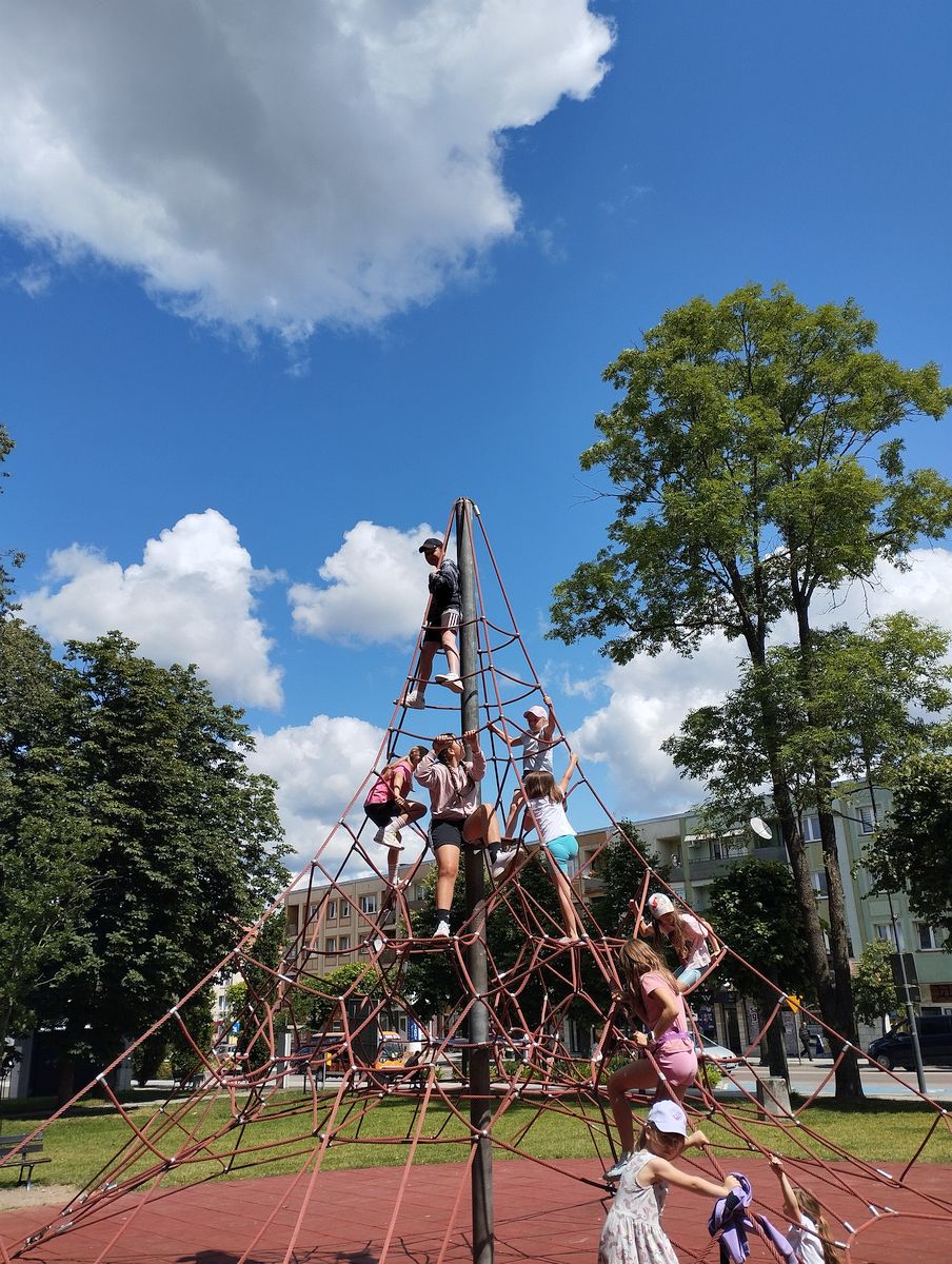 Na zakończenie pierwszego tygodnia przygód wakacyjnych udaliśmy się na „pajaczka” w parku miejskim – tam młodzi tropiciele mogli sprawdzić swoją odwagę i spryt.