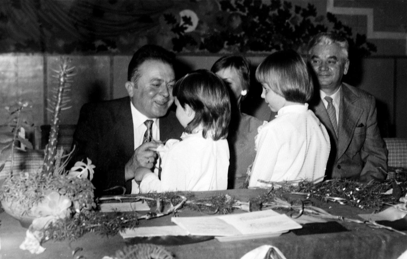Zimą przed gołdapskim Domem Dziecka w latach siedemdzisiątych