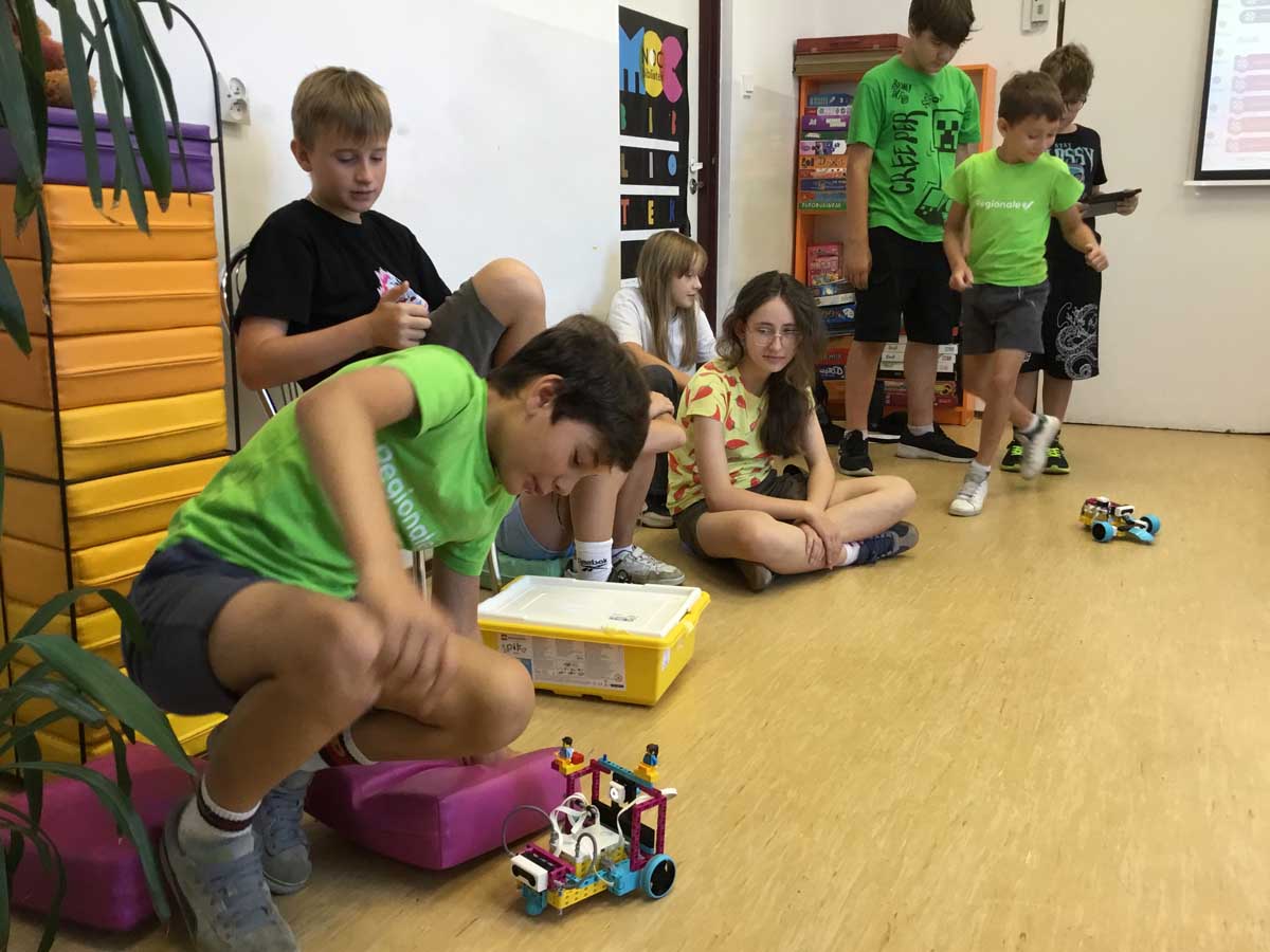 Pracując zespołowo metodą prób i błędów, wszyscy uczyli się tworzenia poprawnego kodu. W świat programowania wprowadziły innowacyjne roboty DASH. Uczestnicy podczas zajęć wcielili się w rolę konstruktorów – z klocków Lego Spike zbudowali własne zdalnie sterowane pojazdy, a potem z pomocą wolontariuszek wprawili je w ruch i modyfikowali zgodnie z fantazją!
