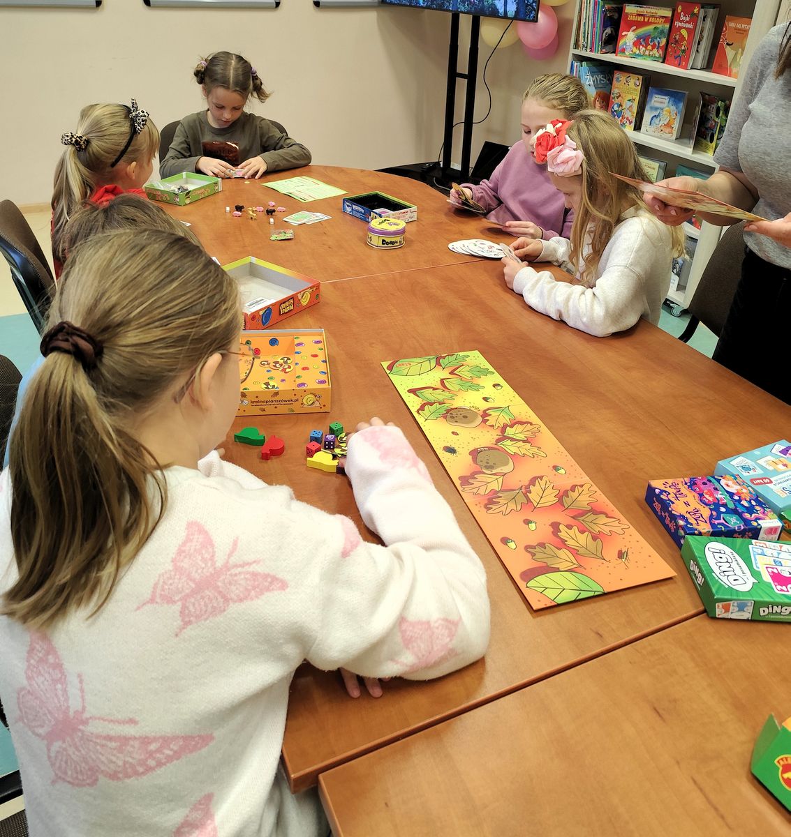 Każda plansza była wyjątkowa – ozdobiona według indywidualnego pomysłu autora. Zwieńczeniem spotkania były wspólne rozgrywki, podczas których nie brakowało emocji, śmiechu i zdrowej rywalizacji. Zajęcia udowodniły, że gry planszowe to nie tylko świetna zabawa, ale też sposób na rozwijanie wyobraźni, logicznego myślenia i umiejętności współdziałania. Biblioteka ponownie stała się miejscem, w którym nauka spotyka się z przyjemnością i wspólnotą.