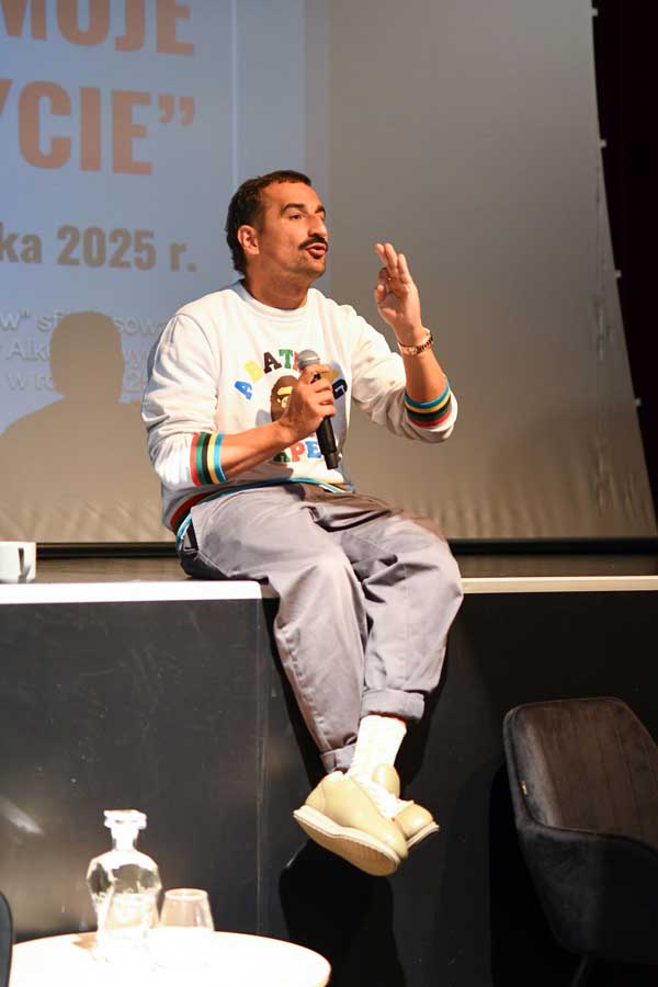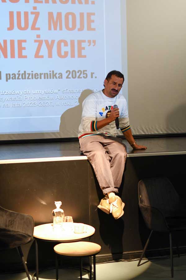 Pan Michał dzielił się z nami swoimi uczuciami. Opowiadała o walce z uzależnieniem, piekle życia z ojcem alkoholikiem i własnej drodze w przepaść. I był w tej opowieści szczery, prawdziwy nie oszczędzał drastycznych wspomnień. Wiele było też mowy o wierze w boga i znaczeniu religii w trzeźwieniu. Nasz gość dzielił się również swoimi doświadczeniami z życia aktorskiego.