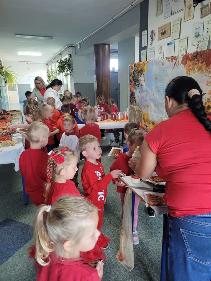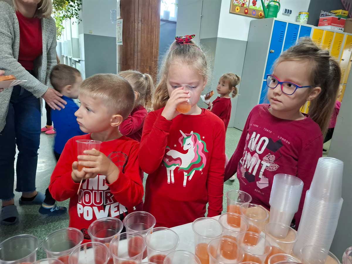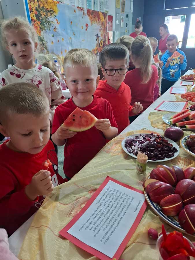 Październik przywitał nas ciepłym czerwonym uśmiechem. 2 października w Szkole Podstawowej im. M. Kajki w Grabowie mogliśmy częstować się bez ograniczeń pysznymi darami natury w tym właśnie kolorze.