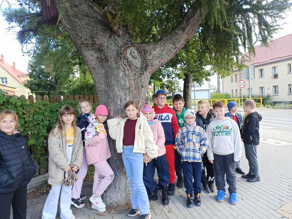 W ramach lekcji przyrody wzięliśmy udział w akcji „Przytul się do drzewa”, która połączyła edukację polonistyczną, przyrodniczą i plastyczną z aktywnością na świeżym powietrzu. Zajęcia odbyły się w lesie Kumiecie, gdzie mieliśmy okazję z bliska przyjrzeć się drzewom jesienią, poznać ich gatunki, a także dowiedzieć się, jakie mają znaczenie dla środowiska i dla nas – ludzi.