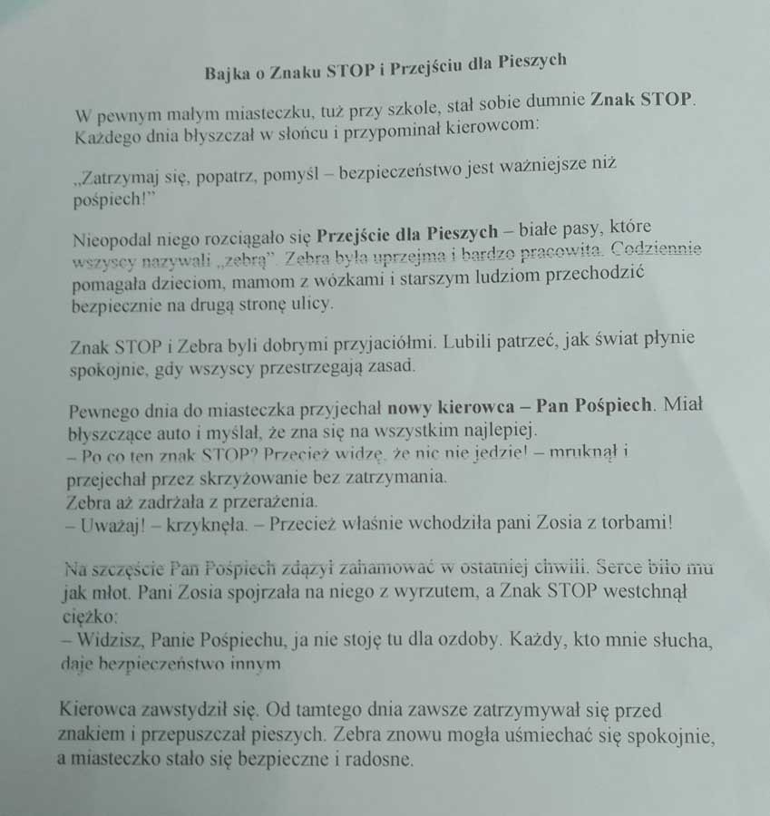 A ja proponuję żeby nie dzieciom przypominać zasady ruchu drogowego, tylko egzekwować przepisy od starszych. Szczególnie na odcinku Gołdap – Żeromskiego – Kośmidry. To tutaj kierowcy zrobili sobie tor wyścigowy.
