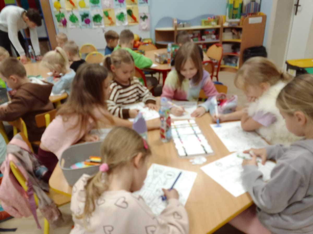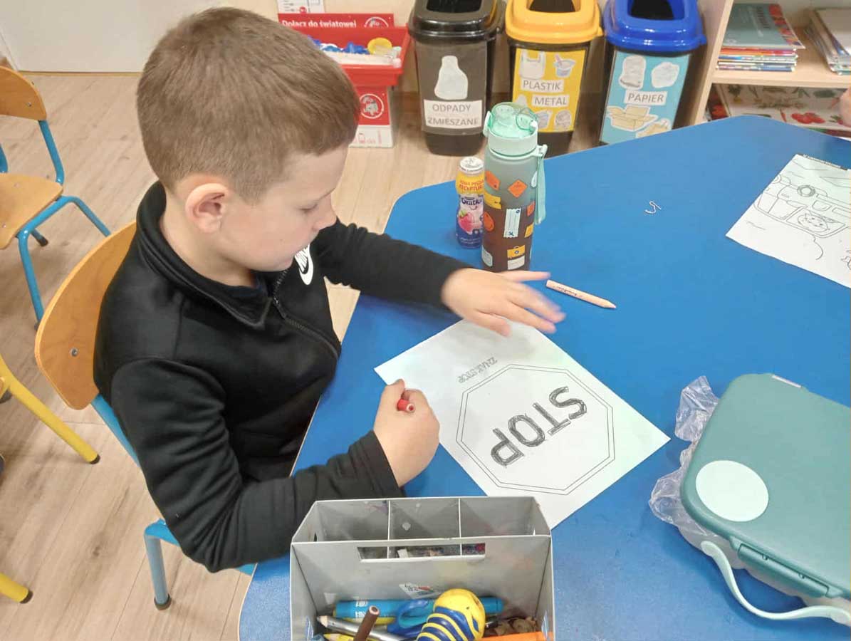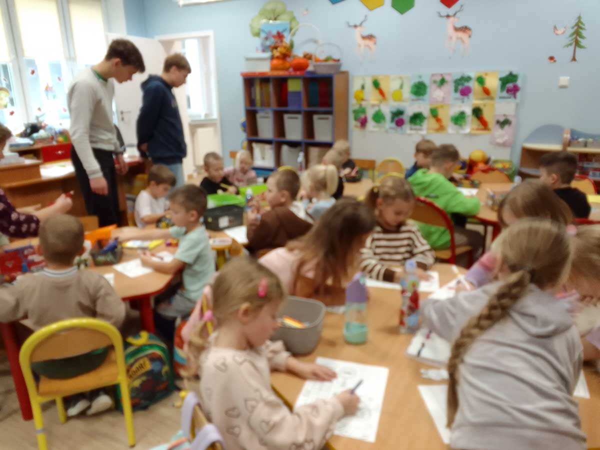 Później uczniowie rozdali młodszym kolegom i koleżankom odblaski i pomogli przymocować je do plecaków. Aby dzieci utrwaliły znajomość kolorystyki znaków, ich wygląd, przeznaczenie, uczniowie klas ósmych rozdali kolorowanki. Ósmoklasiści zlecili też zadanie do wykonania po zajęciach. Dzieci z zerówek mają dzisiaj sprawdzić, jakich znaków jest najwięcej na drodze powrotnej ze szkoły do domu.