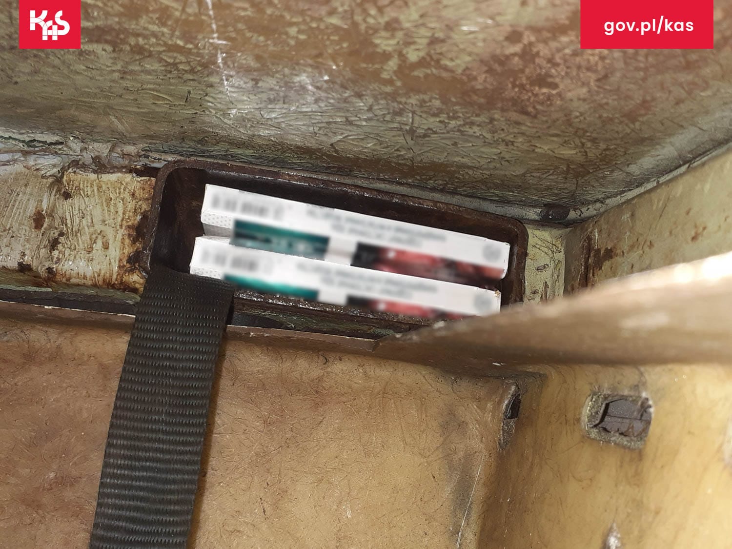W toku kontroli ujawniono, że papierosy zostały ukryte w specjalnie przystosowanych, podwójnych profilach metalowych biegnących wzdłuż dachu autobusu. Skrytki były zabezpieczone elektromagnesem sterowanym z kabiny kierowcy.