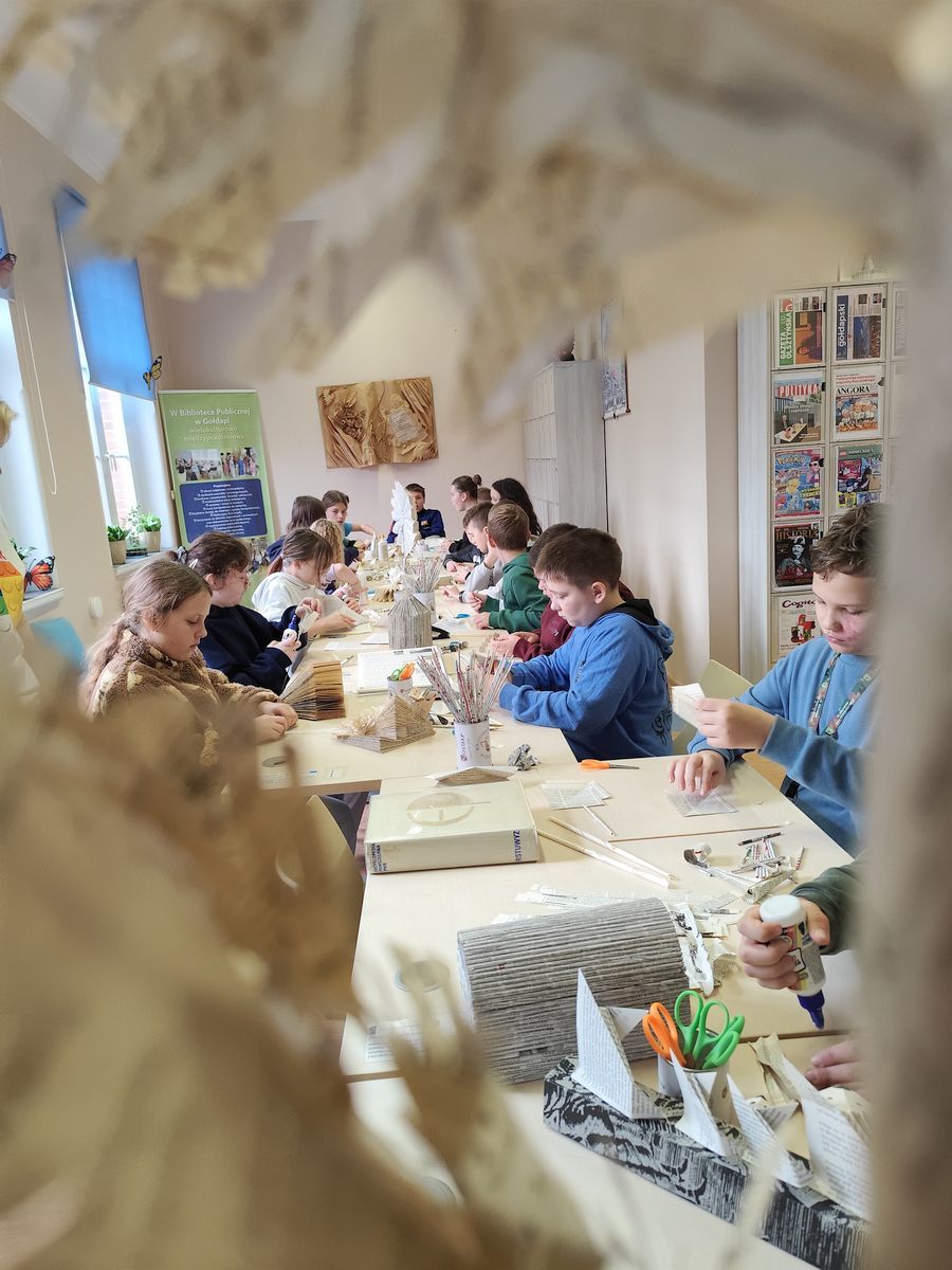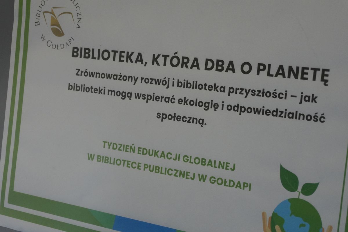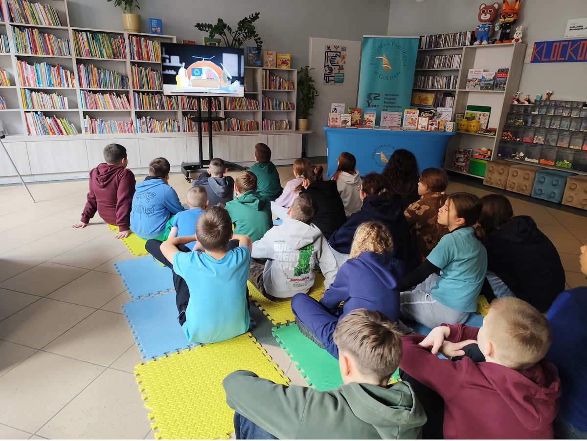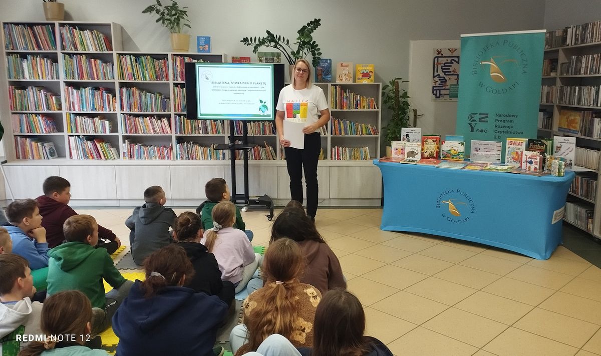 Dziś w Bibliotece Publicznej w Gołdapi odbyło się spotkanie „Biblioteka, która dba o planetę”, w którym uczestniczyli uczniowie klasy Vb ze Szkoły Podstawowej nr 1 im. Mikołaja Kopernika w Gołdapi. Podczas zajęć rozmawialiśmy o tym, czym jest zrównoważony rozwój i w jaki sposób nowoczesne biblioteki mogą wspierać ekologię oraz odpowiedzialność społeczną.